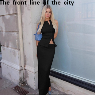 sexy hip 气质纯色坑条无袖 slim 时尚 fit dress新款 Lace hugging