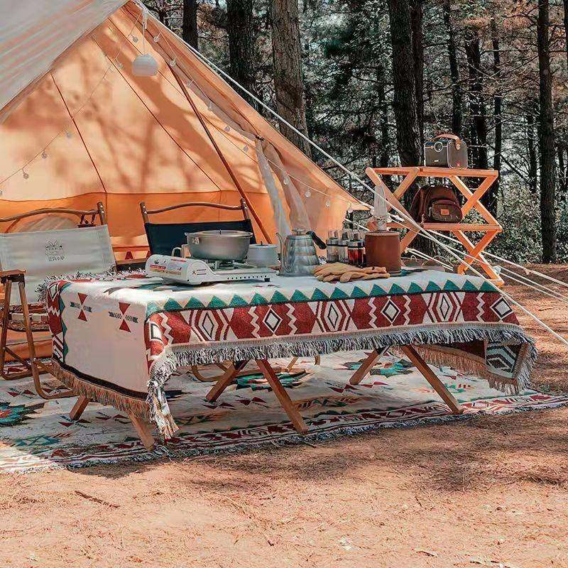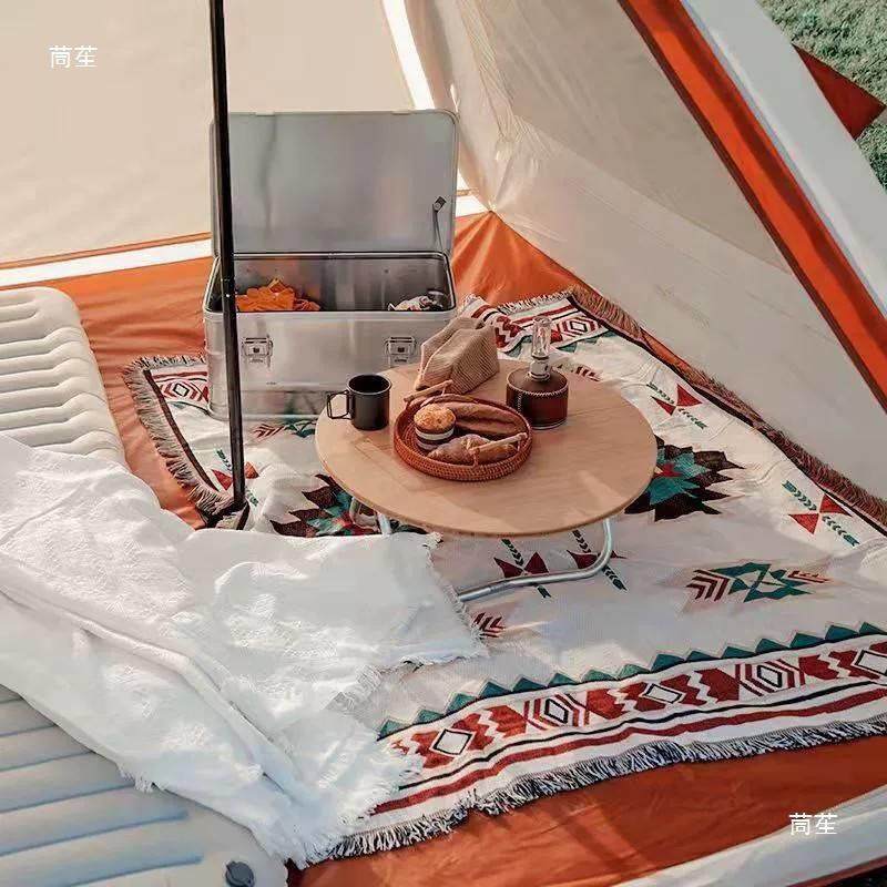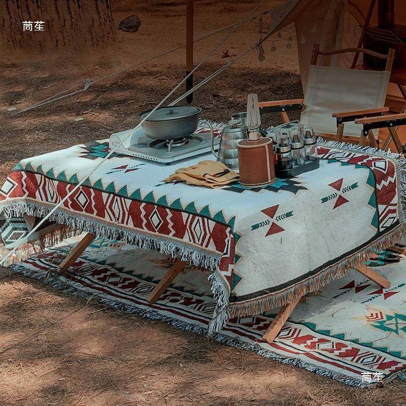 露营毛夏季 桌布野餐波垒 车织载户外毯沙发垫针野营毯子麦太保法式