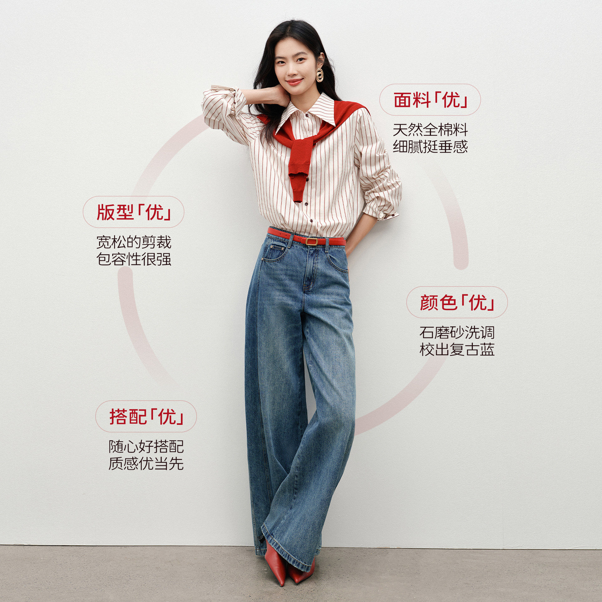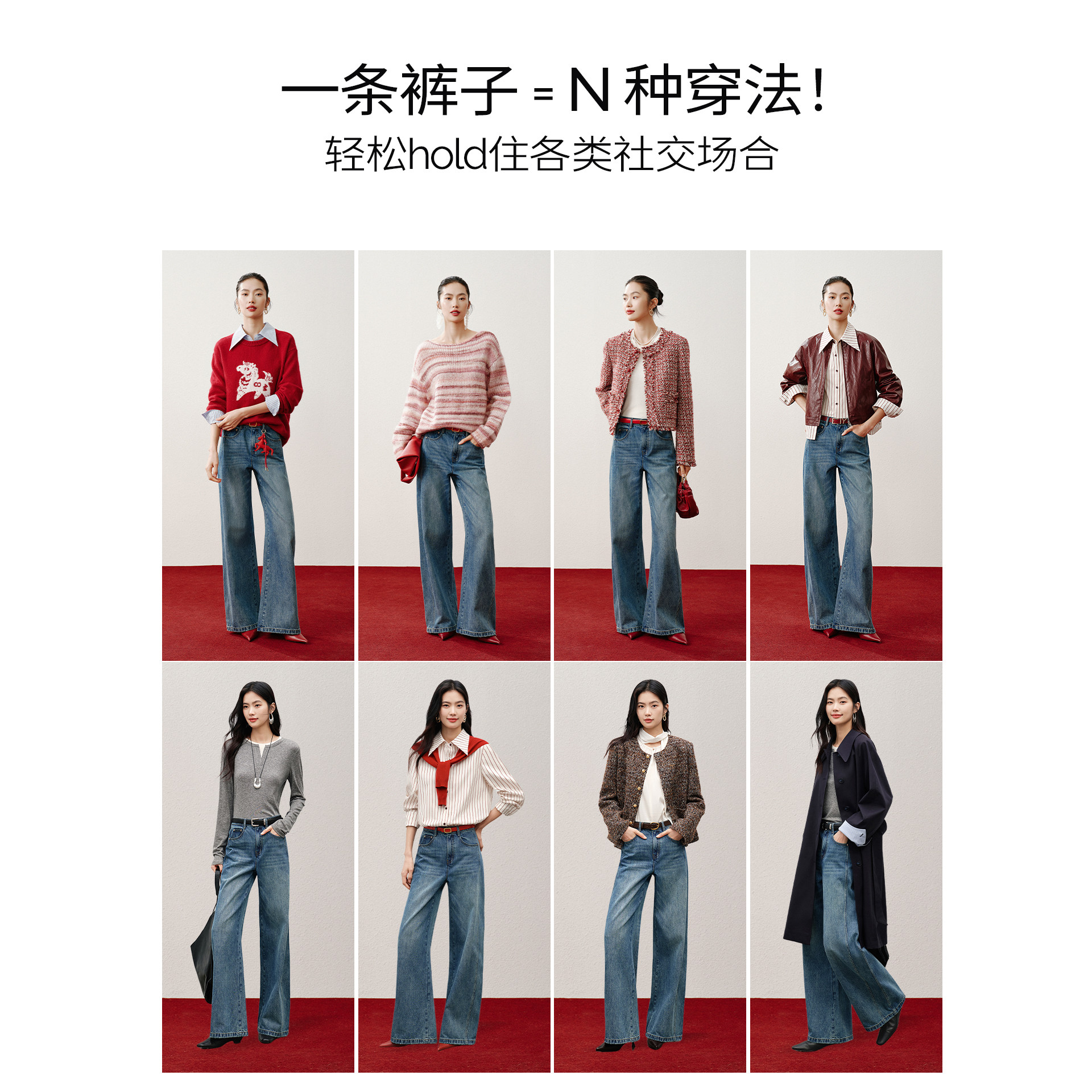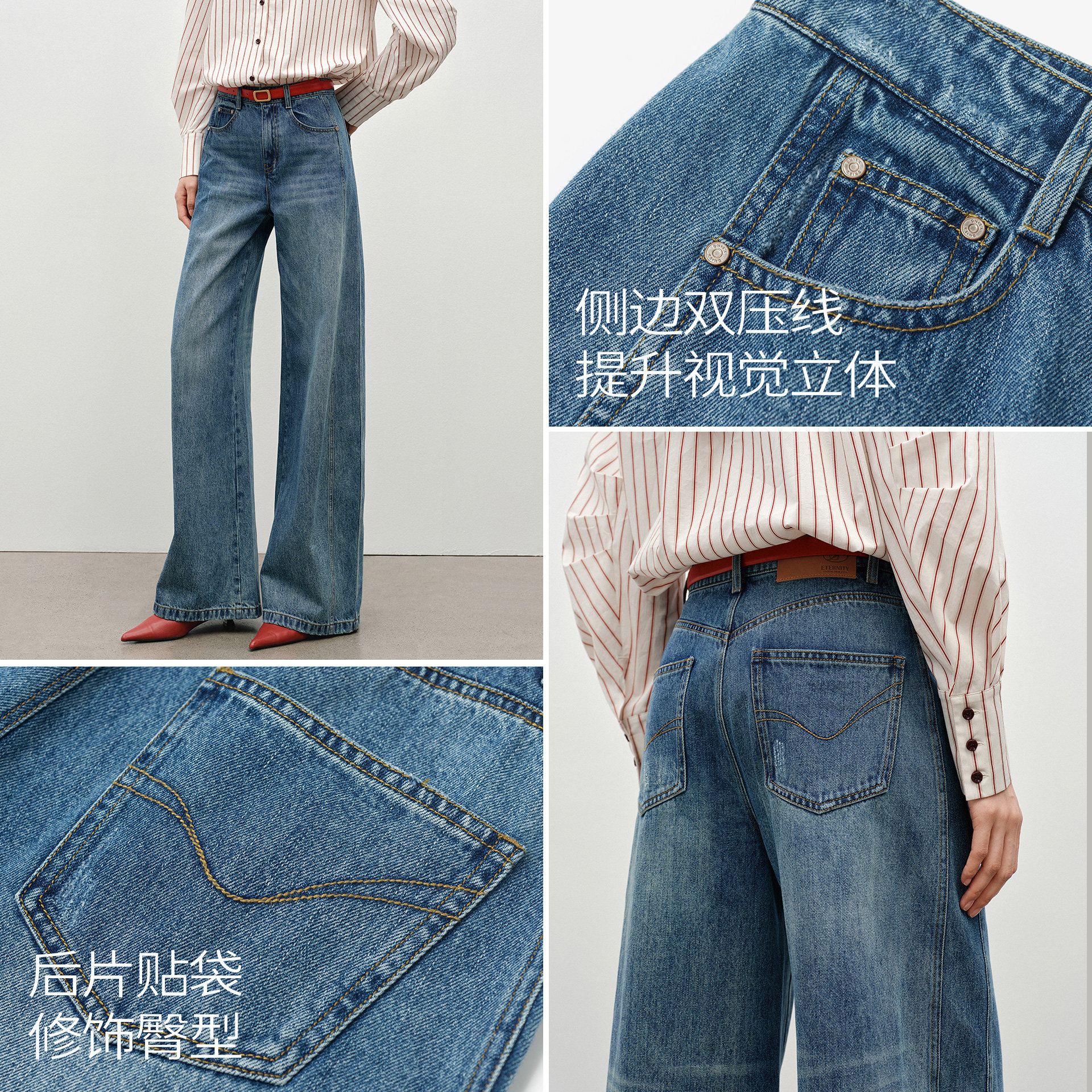 松弛感直筒显瘦休闲拖地裤 女秋季 复古微喇牛仔裤 橘子树在哪儿美式