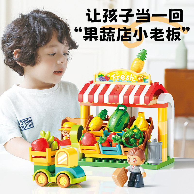 费乐绿蔬鲜果铺大颗粒益智拼插积木幼儿园宝宝过家家玩具儿童礼物