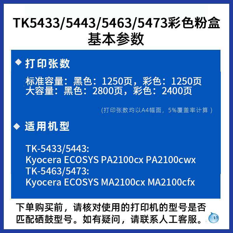 5473大容量碳粉盒适用京瓷PA2100 5463粉盒5443 MA2100cx 5433
