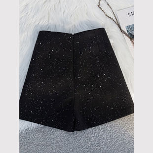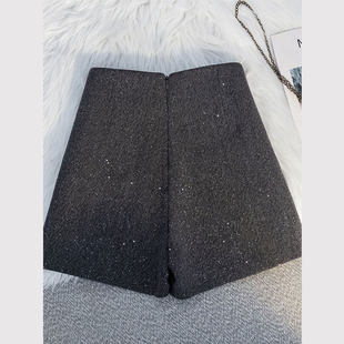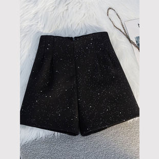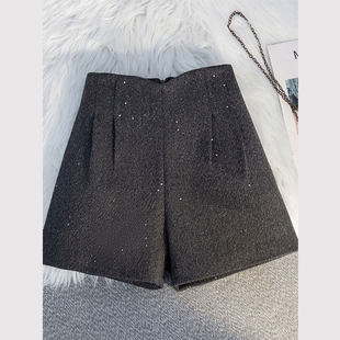 亮片毛呢短裤 胖mm小个子高腰显瘦A字阔腿靴裤 女冬季 大码 新款 6179