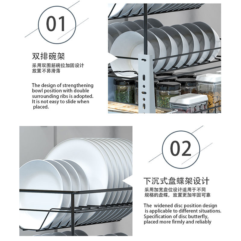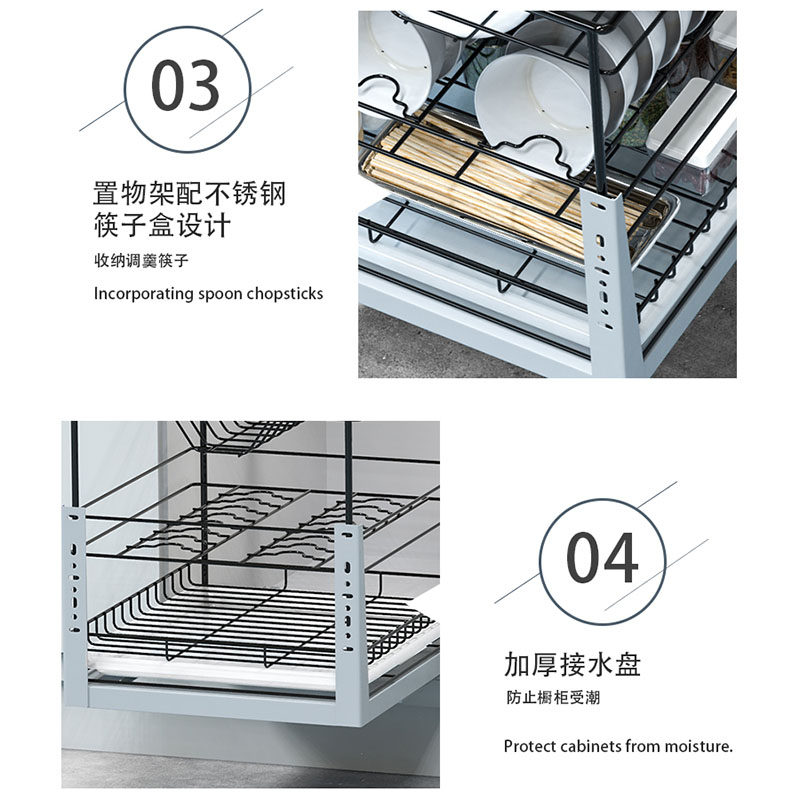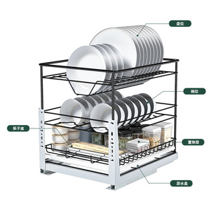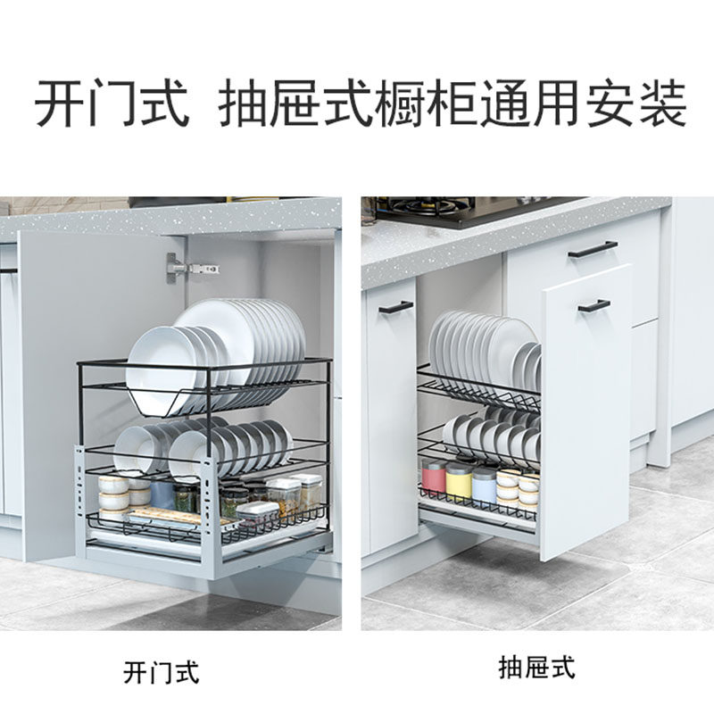 悍高橱柜拉篮铝合金双层开门式 碗篮内置碗架304不锈钢收纳碗碟篮
