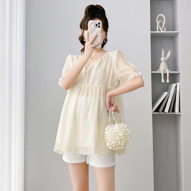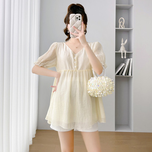 夏季 孕妇装 甜美减龄两件套短袖 孕妇夏装 托腹短裤 时尚 上衣 夏 套装