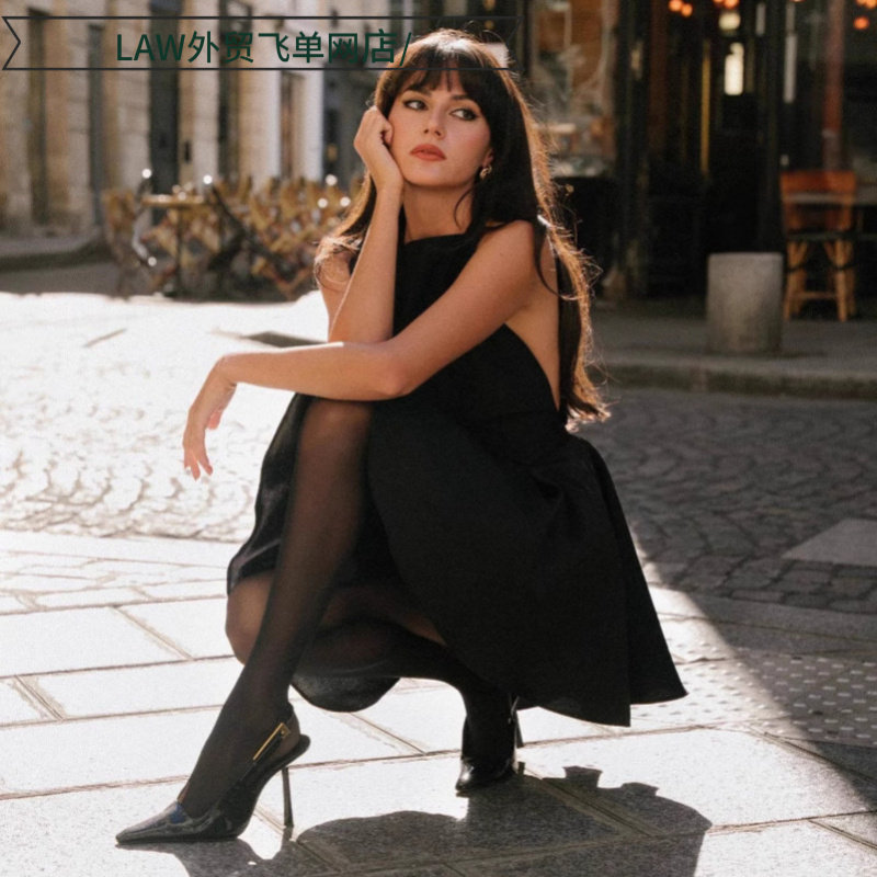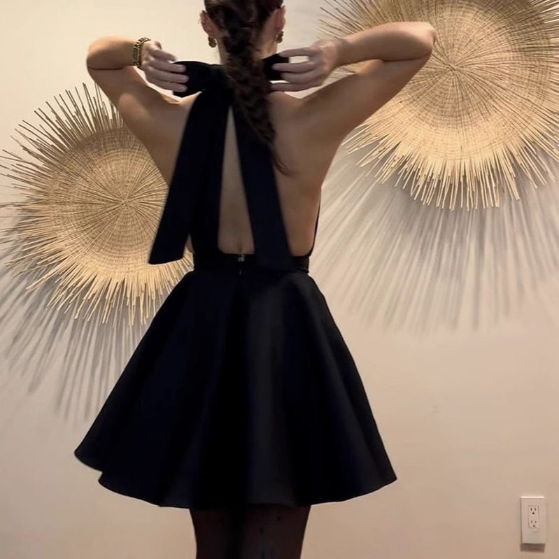 satin party deep neck dress春夏挂脖绑带蝴蝶结露背性感 Sexy