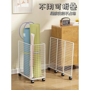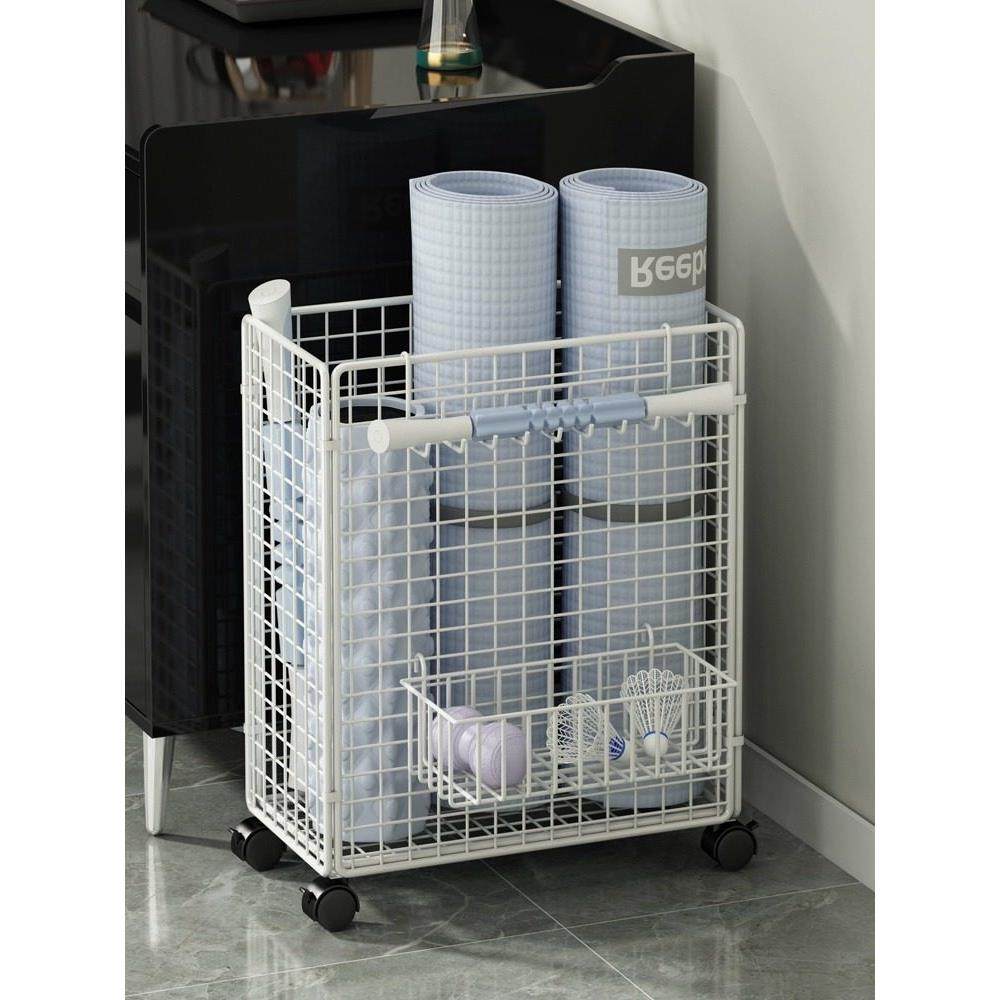 瑜伽垫收纳筐可折叠带轮大容量运动用具羽毛球拍健身器材置物架子