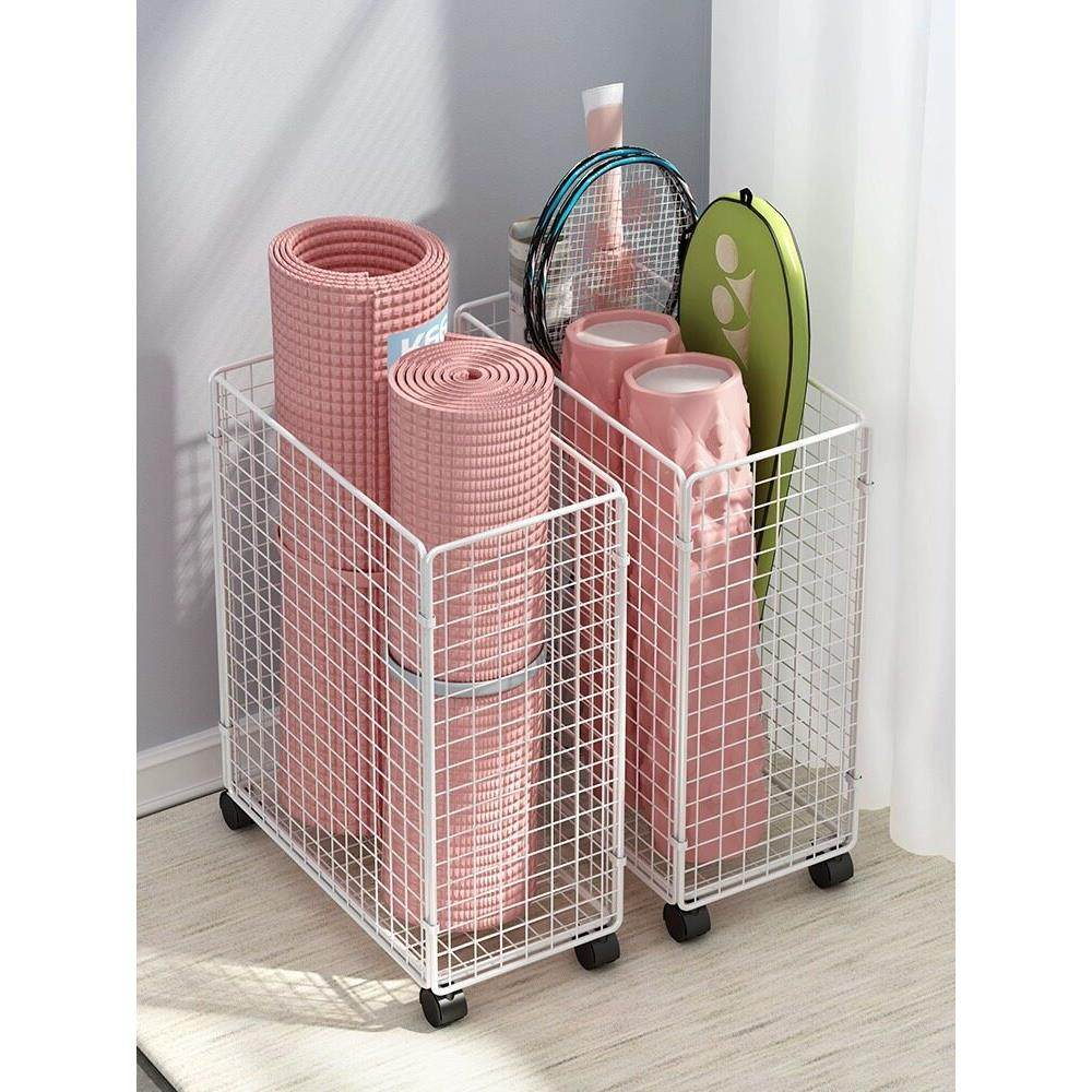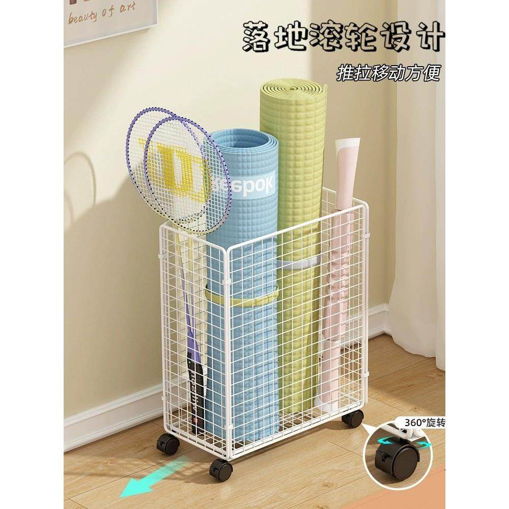 瑜伽垫收纳筐大容量家用带轮可移动健身器材羽毛球运动用具置物架