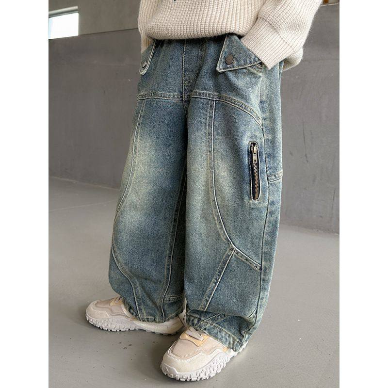 加绒加厚一体绒牛仔裤 男童冬装 儿童冬季 子2025秋冬新款 中大童潮 裤