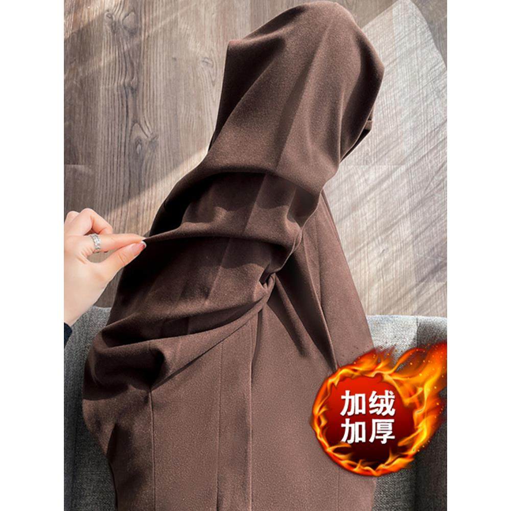 子 女秋冬加绒高腰垂感直筒拖地休闲裤 300斤胖mm大码 雪尼尔阔腿裤