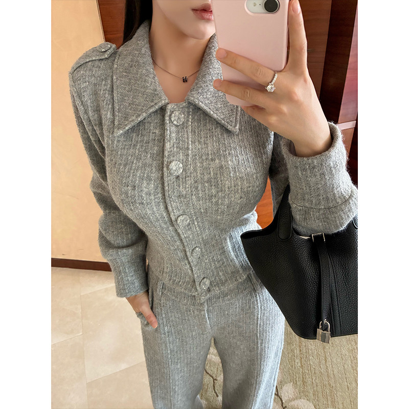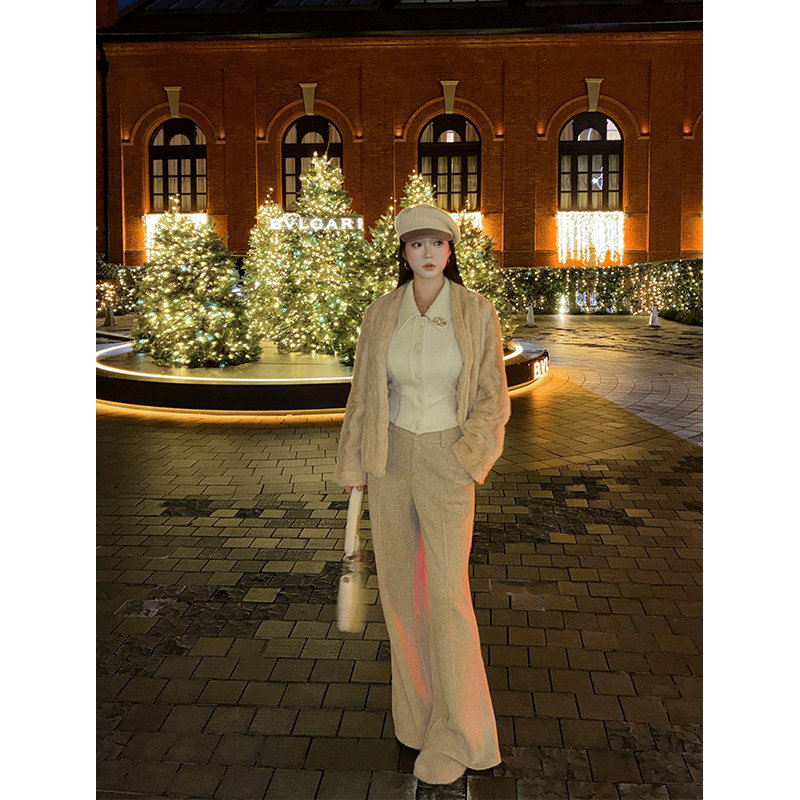 时髦微胖收腰翻领外套慵懒小香感加绒上衣 优雅日常 肉装 小cherry