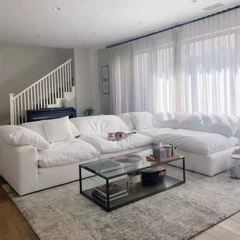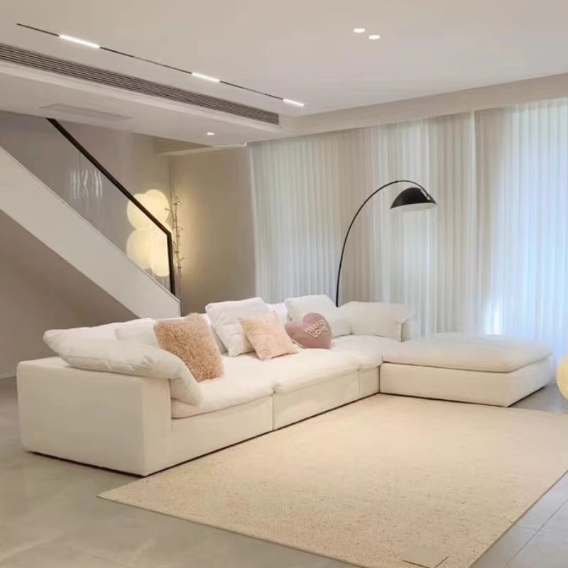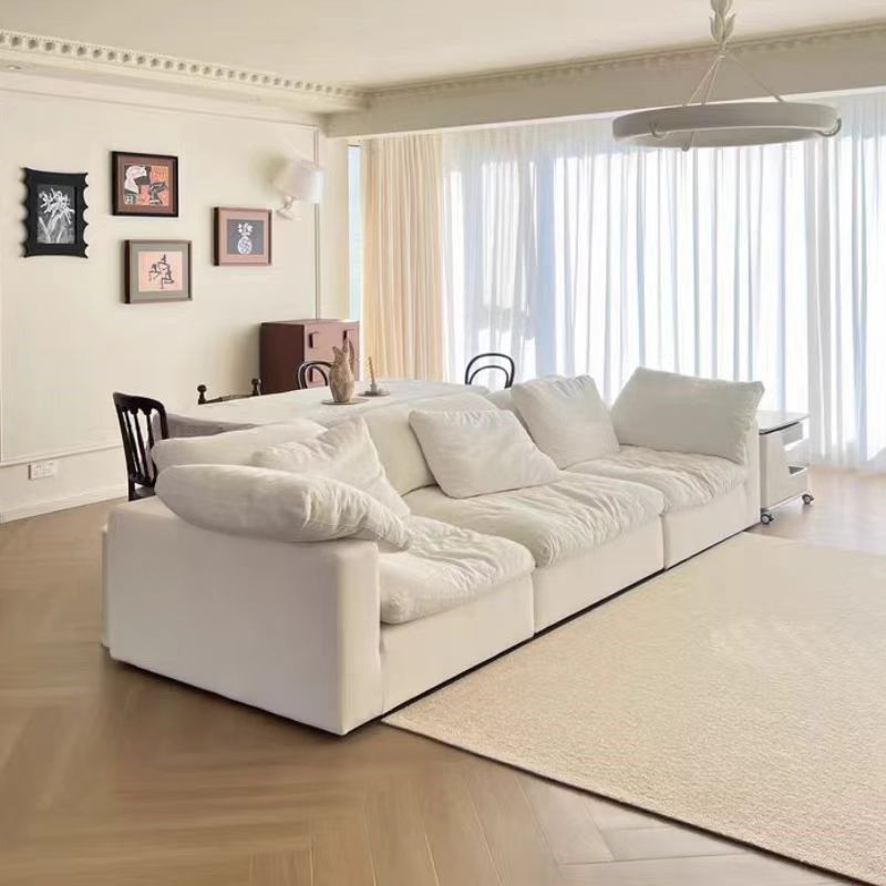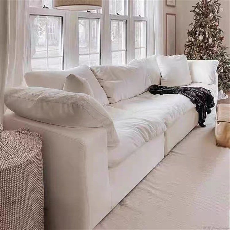 DDC新款 奶油风可拆洗雪尼尔绒亚麻云朵布艺沙发客厅高靠背直排