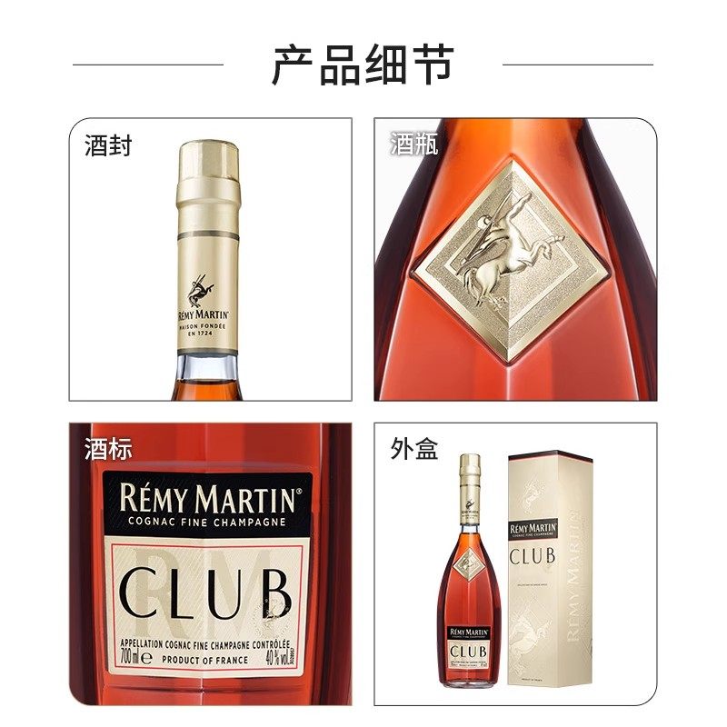 5瓶 人头马CLUB法国优质香槟区干邑白兰地洋酒700ml 官方旗舰