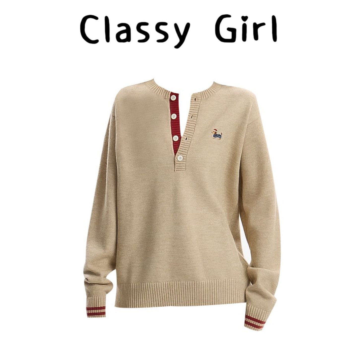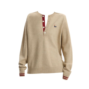 套头上衣 宽松显瘦复古撞色针织衫 韩系慵懒风亨利领毛衣女冬季 新款