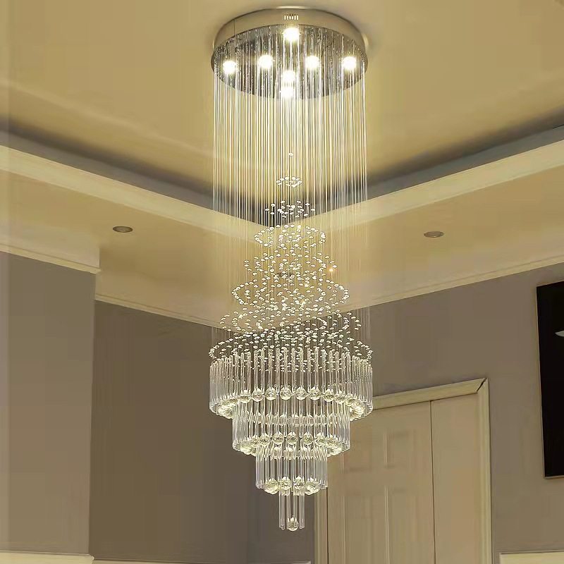 现代水晶长吊灯圆形客厅灯酒店别墅大厅水晶吊线灯楼梯间灯具灯饰