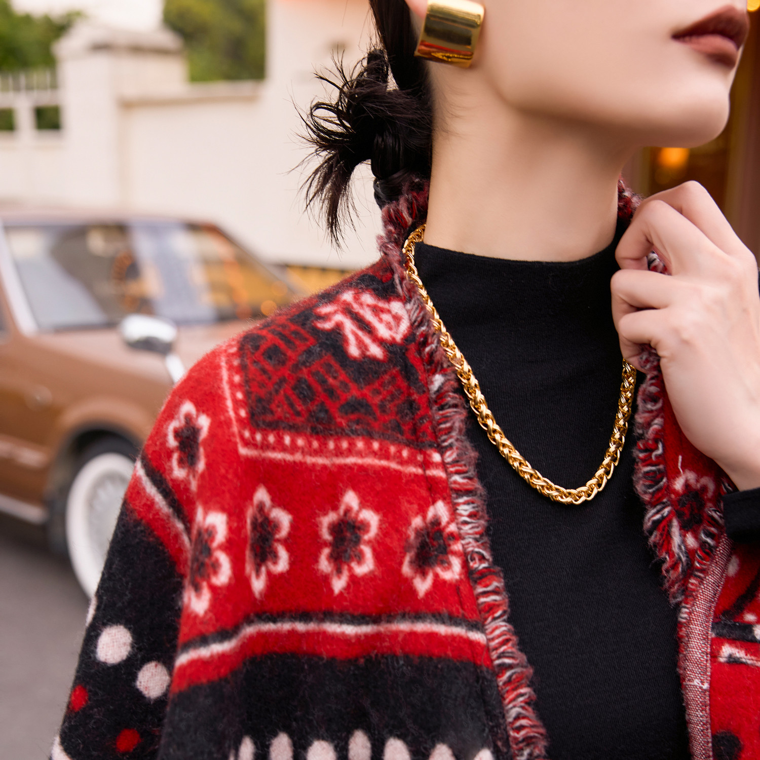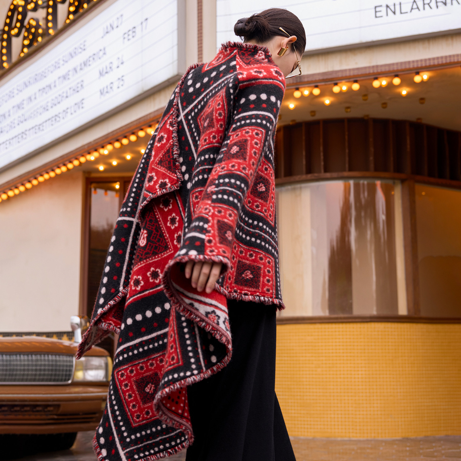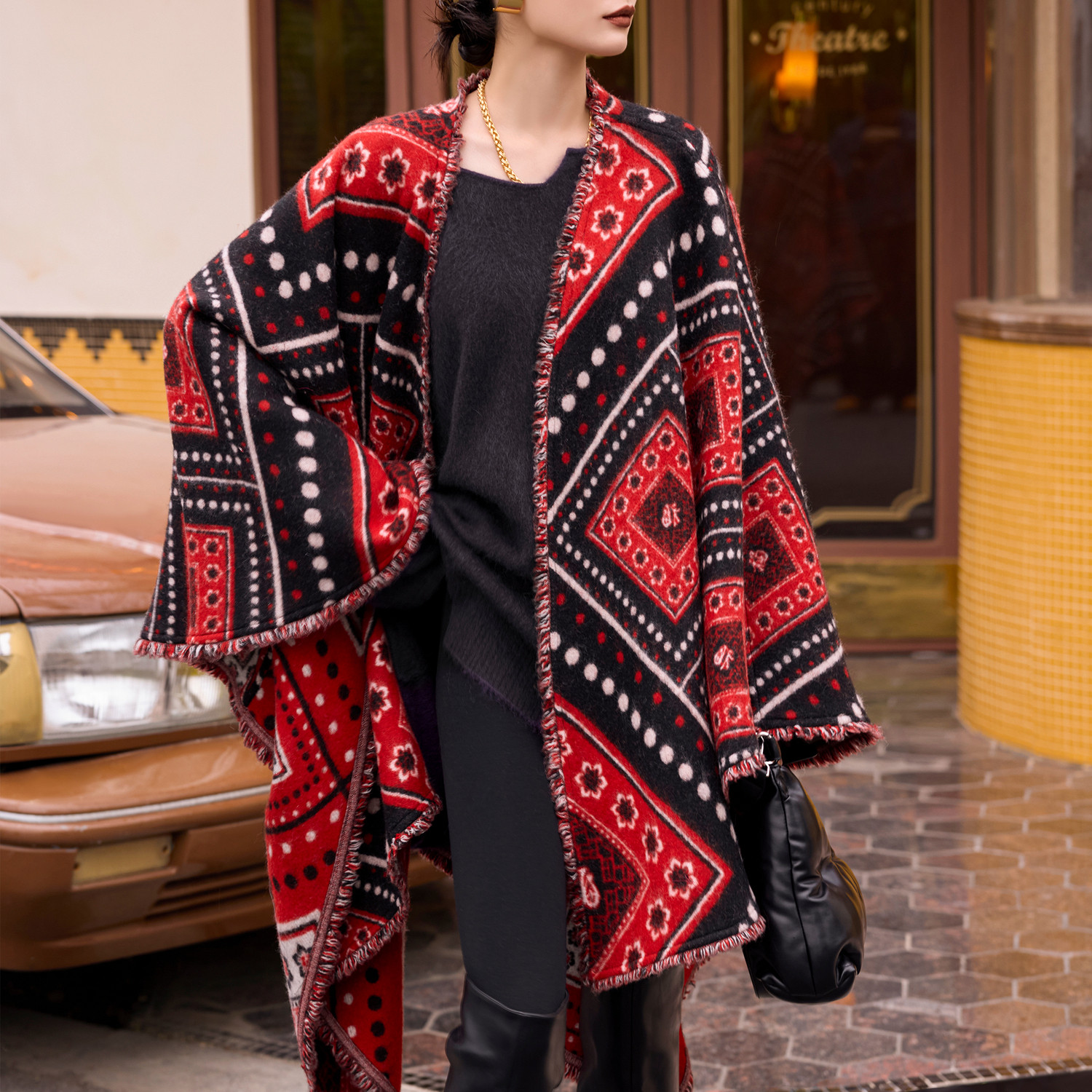 松弛感百搭披肩外套 新款 TU女装 羊毛斗篷上衣2026年春季