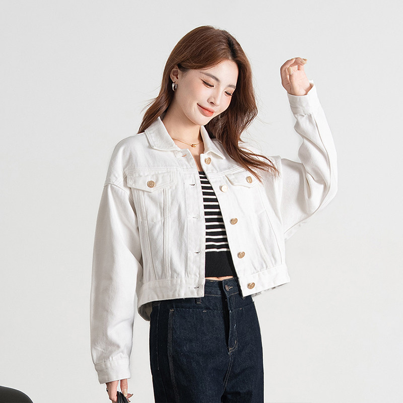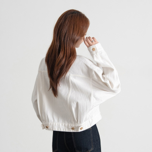 热风女士牛仔夹克外套上衣韩系简约时尚 纯棉白色百搭宽松休闲夹克
