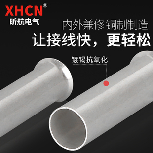 BN紫铜对接铜管电线压接冷压接线裸端子中间连接管铜鼻子接线神器