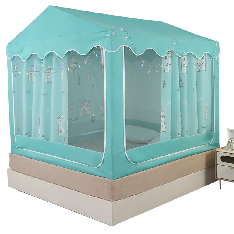 儿童防摔尘可折叠纹帐双门 卧室免安装 夏季 蒙古包蚊帐家用2025新款