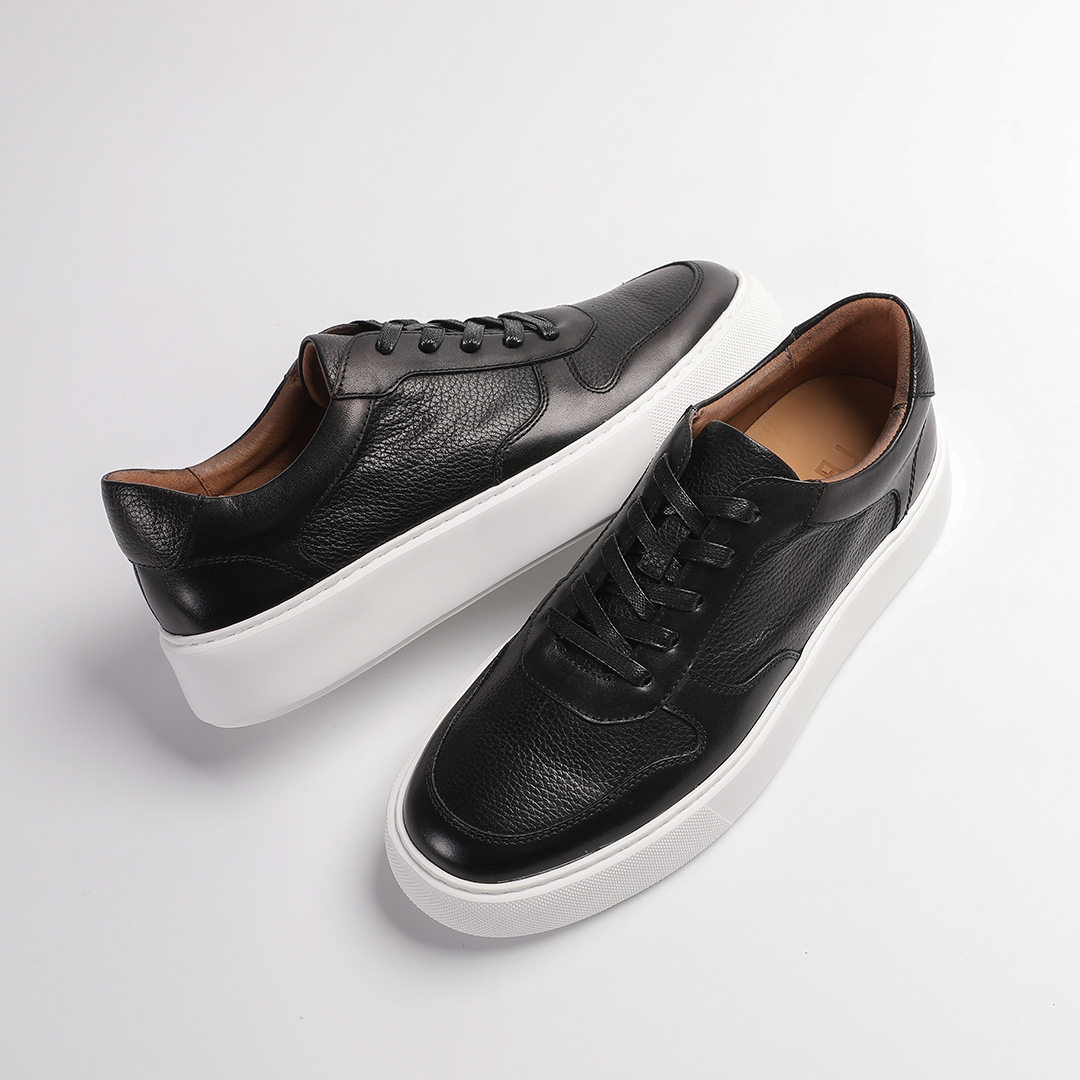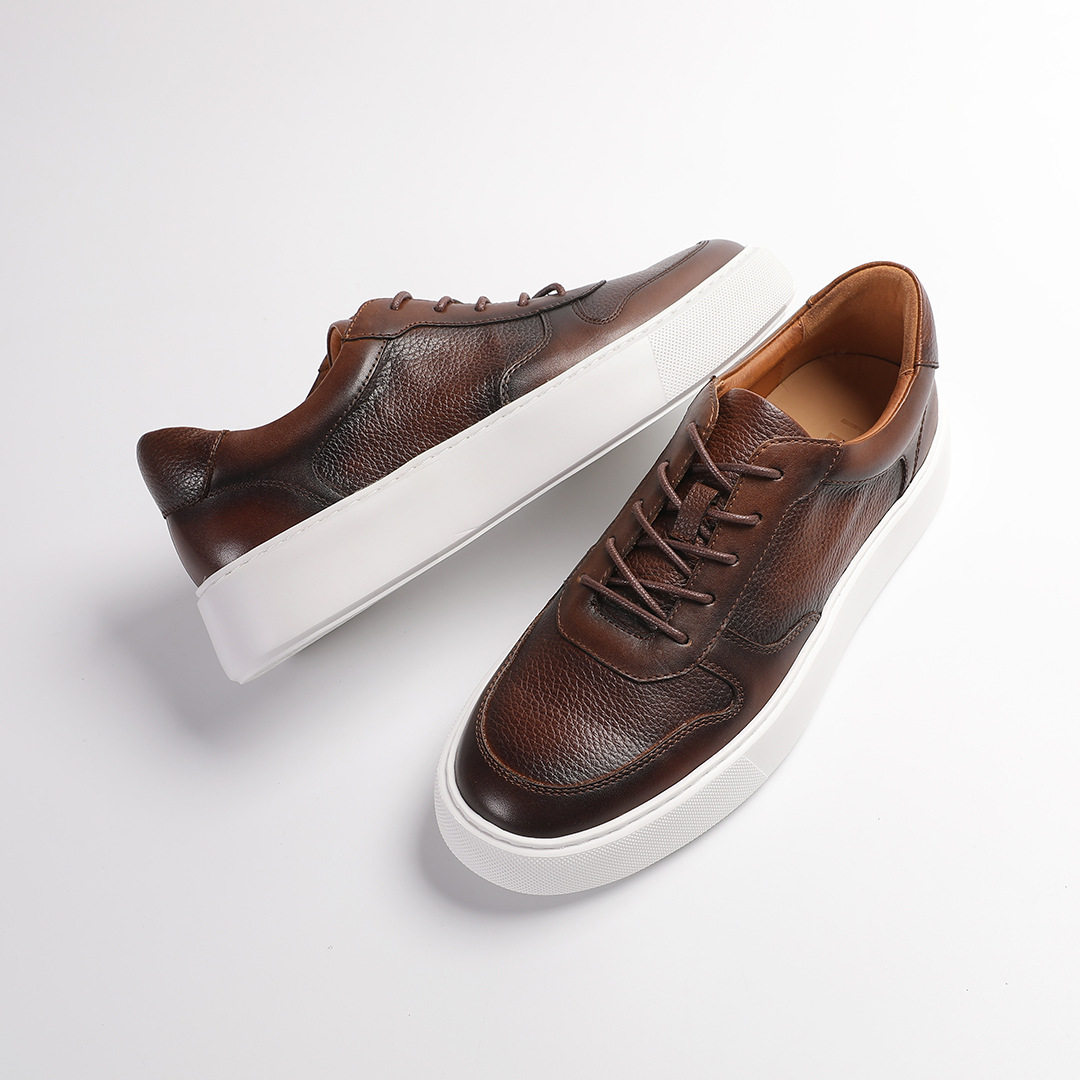 头层牛皮手工厚软底轻便英伦德训鞋 男式 荔枝纹板鞋 弓长梦2026春款