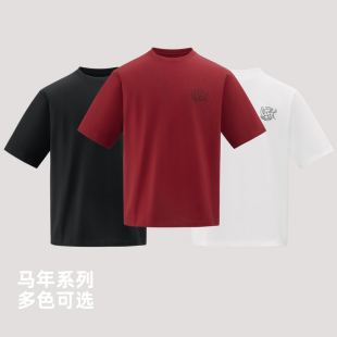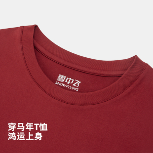 雪中飞2026春新款 T恤马年快乐本命年穿搭 新年红中性男女短袖