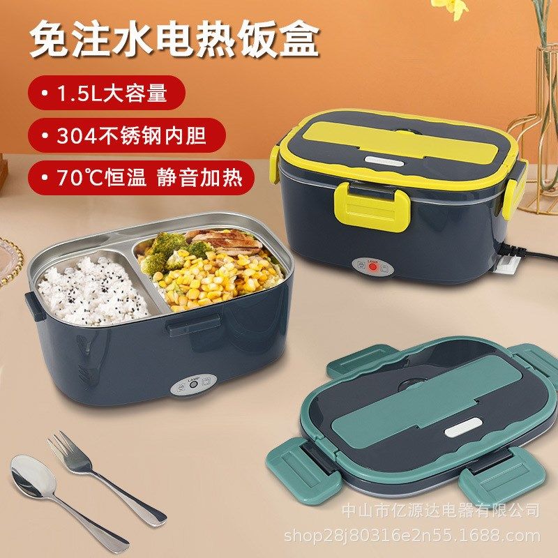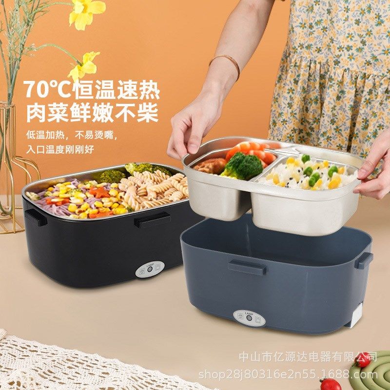 热销黑色电热饭盒不锈钢家用车载二合一加热饭盒插电保温饭盒