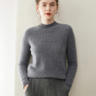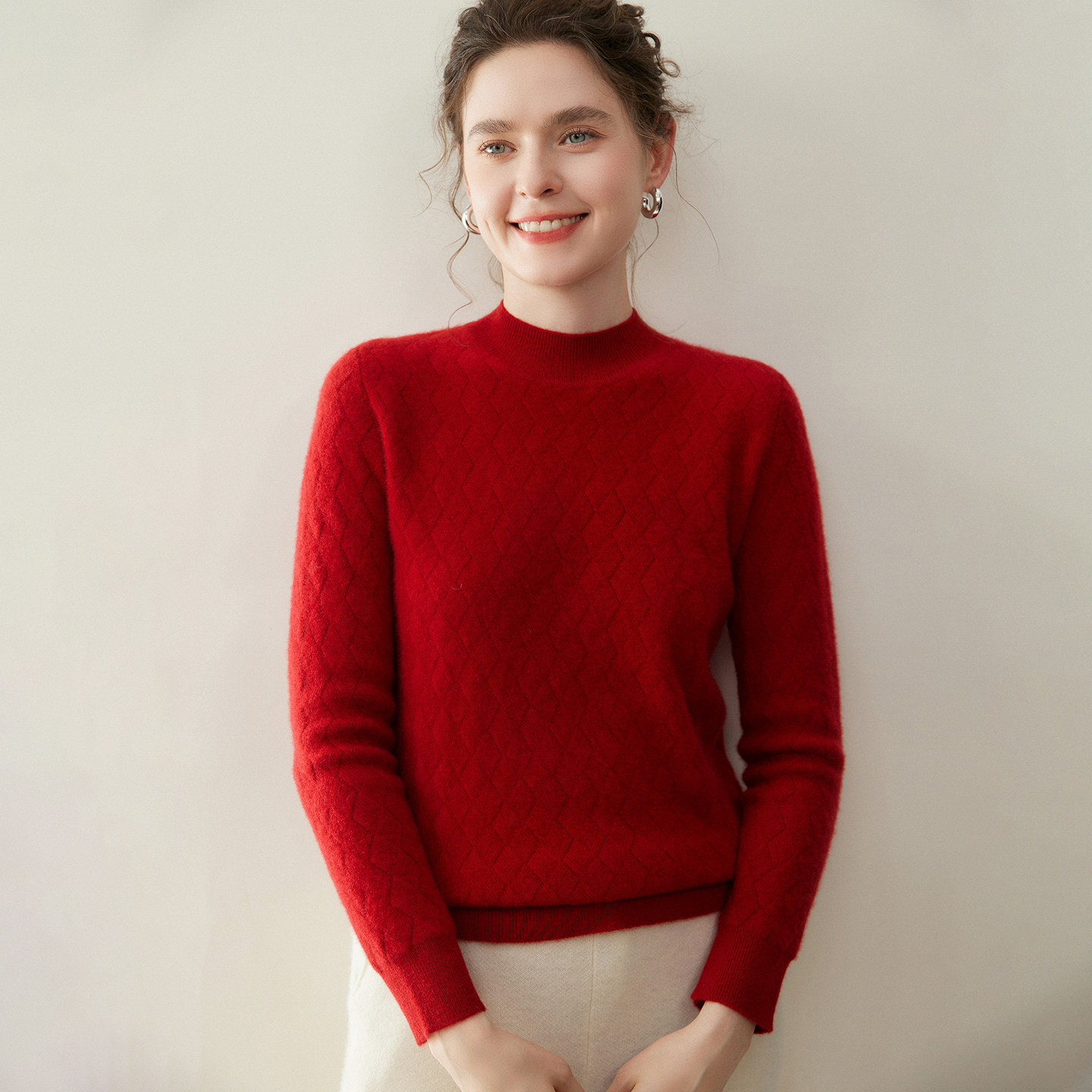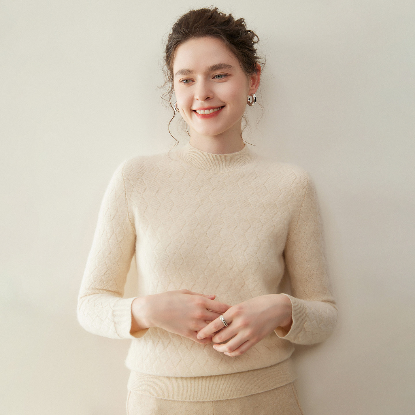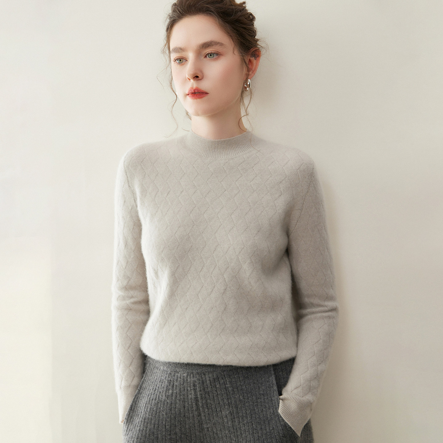 女半高领套头毛衣菱形显瘦针织打底衫 韩版 气质席编100%纯山羊绒衫