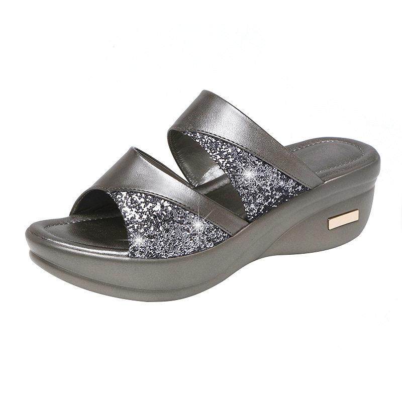 奶蓝色厚底增高凉拖旅行EVA软底沙滩鞋 女夏季 外穿一字拖鞋 细细条