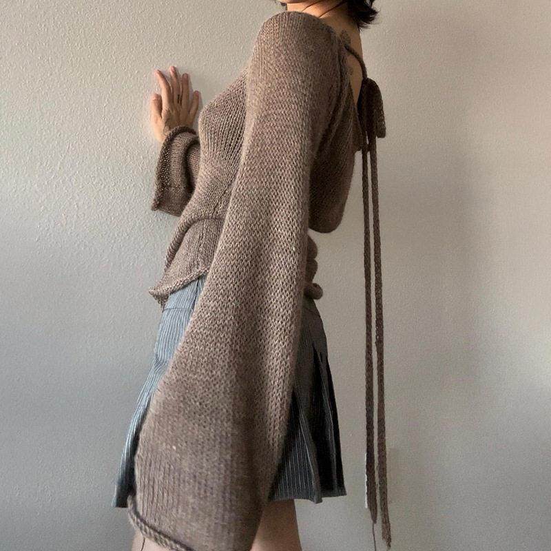 Women Knitted Pullover Y2K Crochet Sweaters Casual Tops Back
