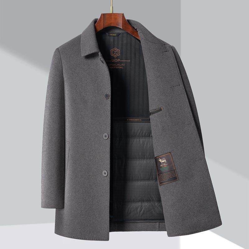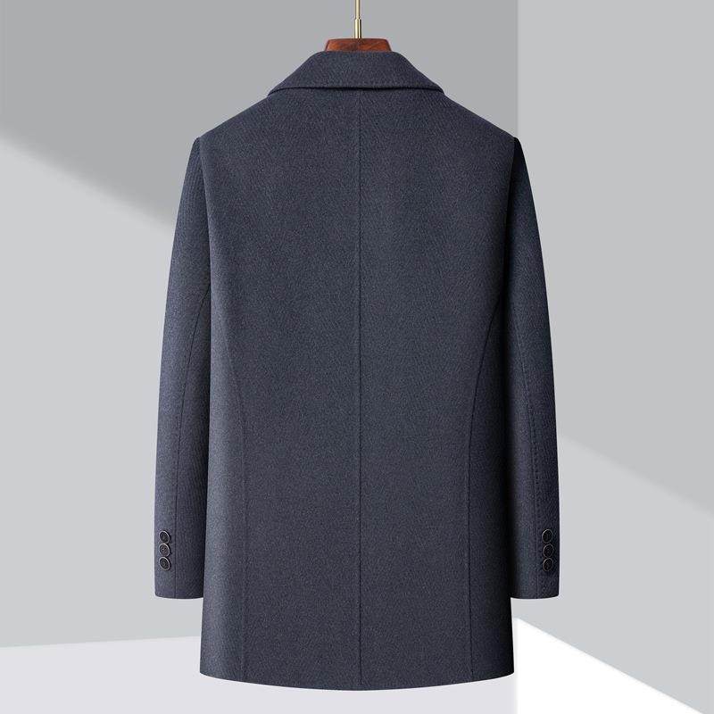 西装 过膝双面羊绒外套 领毛呢子风衣 中长款 纯羊毛双面呢大衣男士