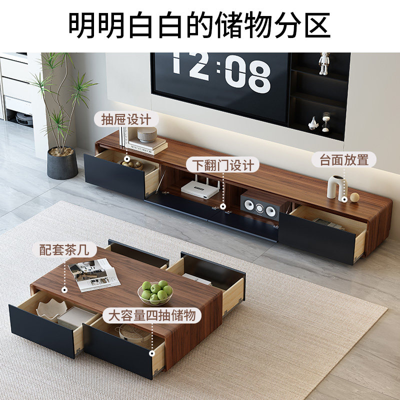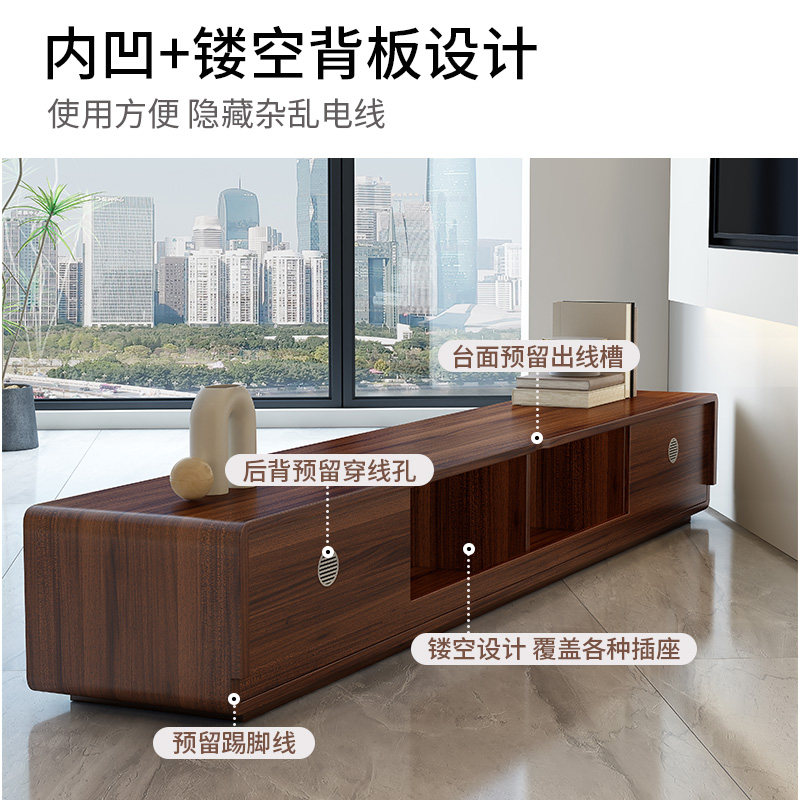 蓝色理想现代简约实木电视柜茶几组合黑胡桃木储物小户型客厅家具