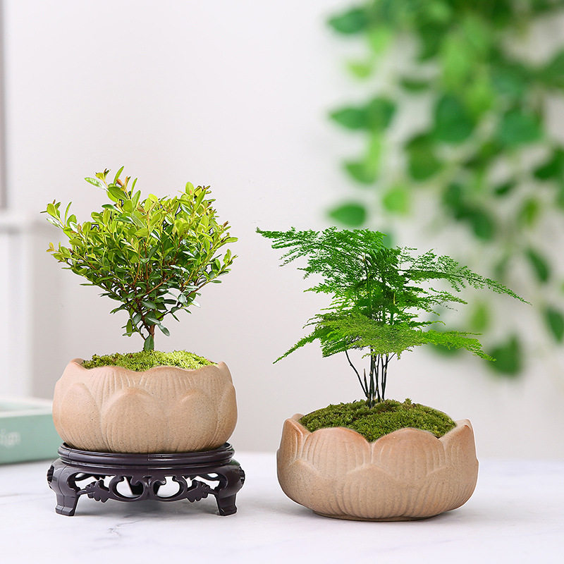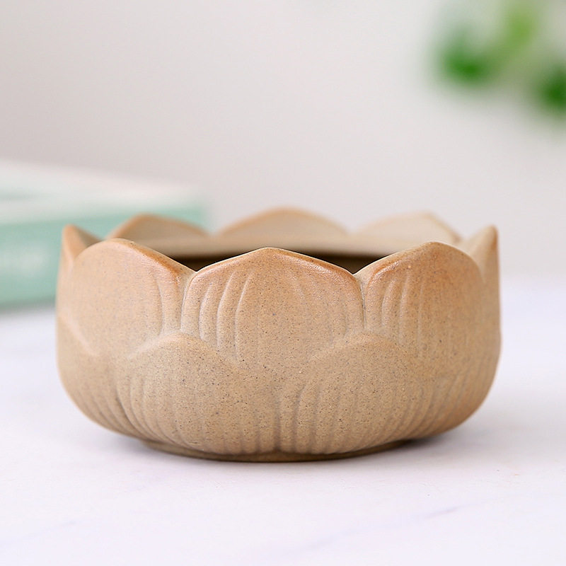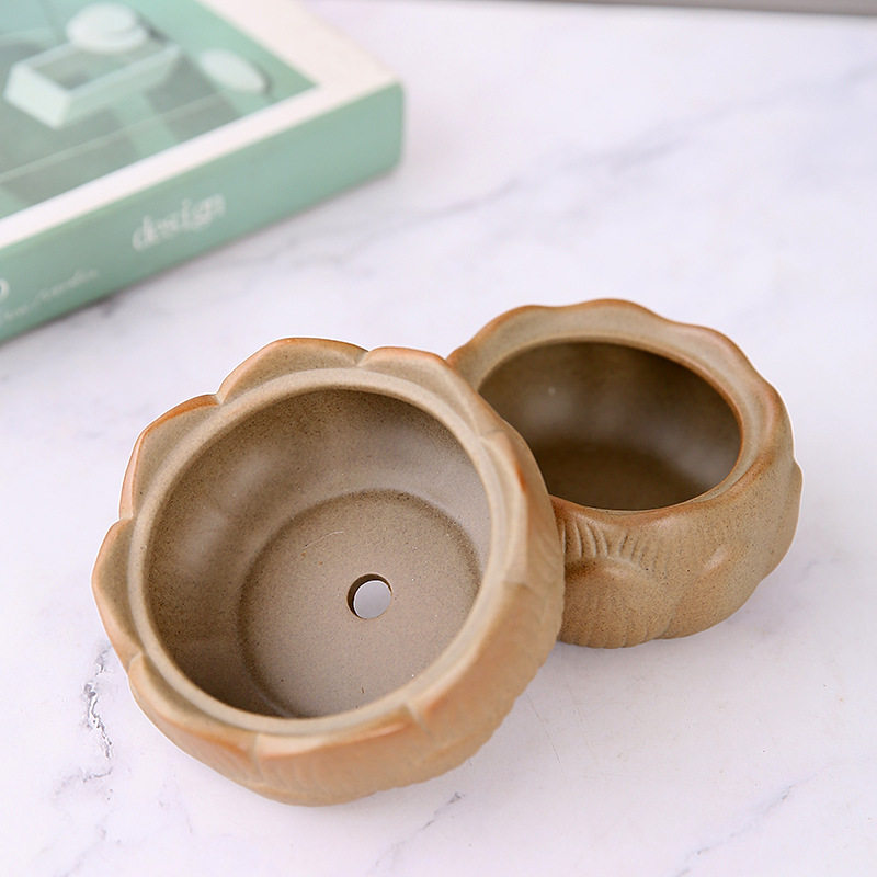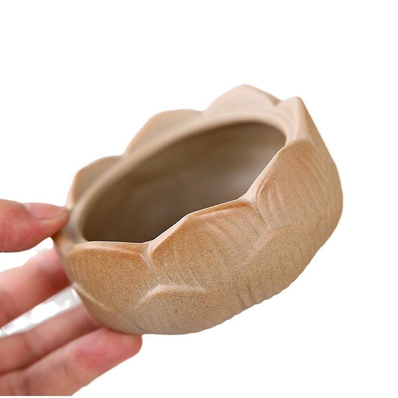 莲花粗陶素烧陶瓷绿植花盆透气文竹花卉盆栽花瓣盆景园艺艺术盆子