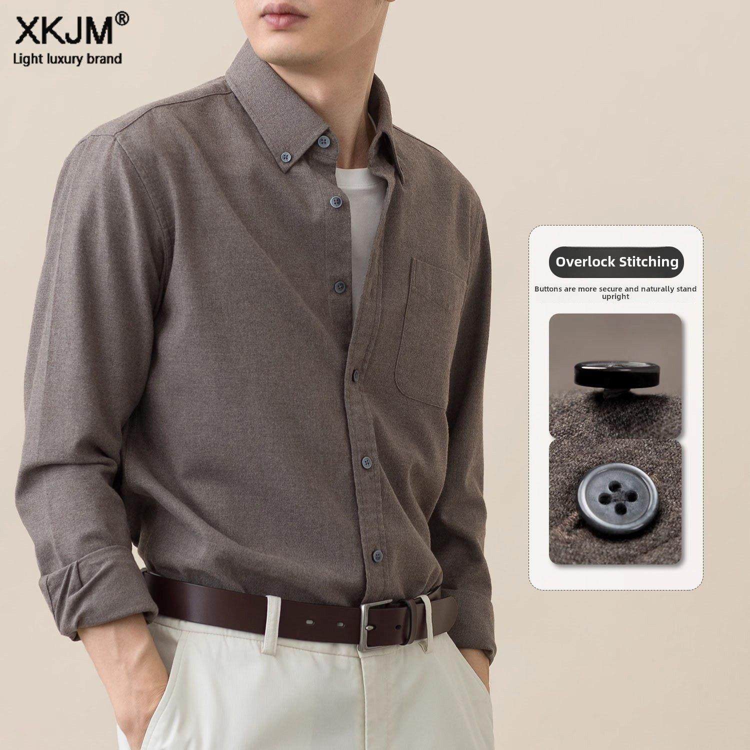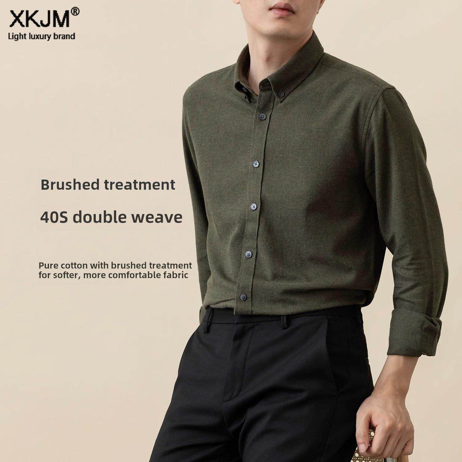 高级感商务休闲寸衫 衬衣色纺舒适磨毛衬衫 长袖 2025春秋冬纯棉男士