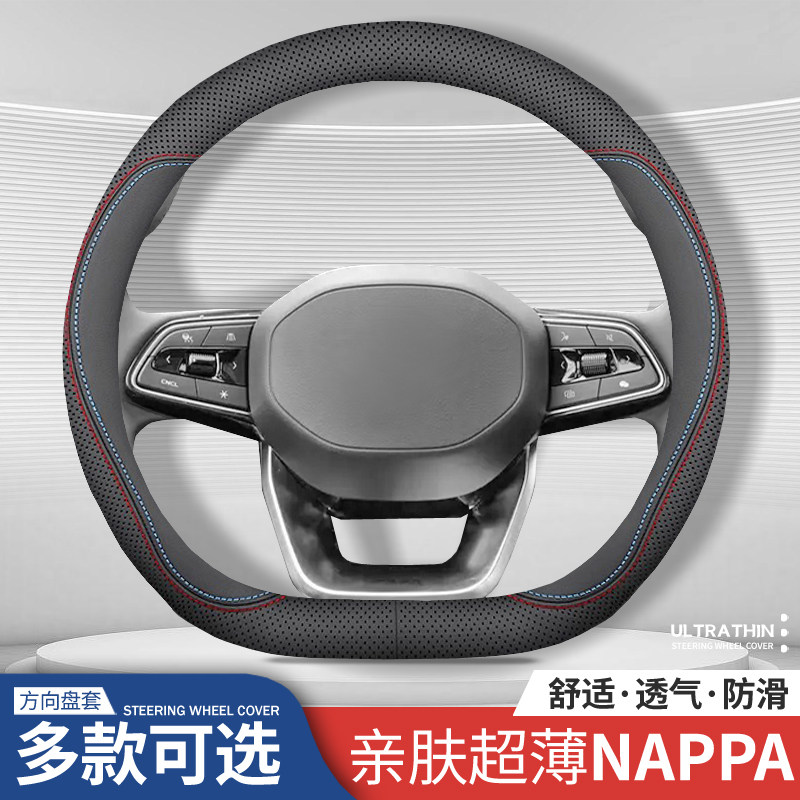 汽车方向盘套真皮手缝男女四季 通用大众牛皮手工皮套防滑缝制把套
