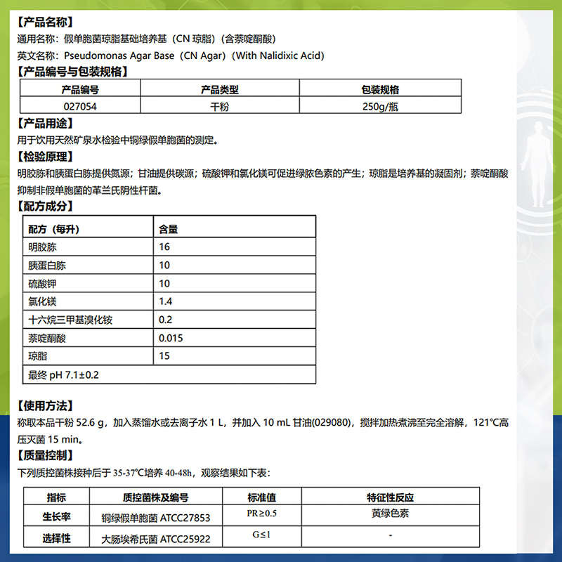 假单胞菌琼脂基础培养基 瓶027054铜绿假单胞菌环凯 CN琼脂BR250g