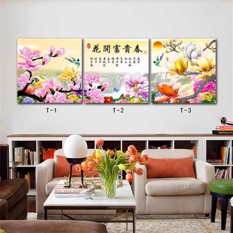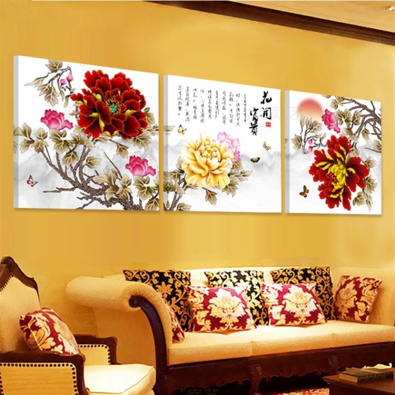 3联挂画不褪色 饰无框三联 卧室沙发背景麋鹿花开富贵欧式 客厅装
