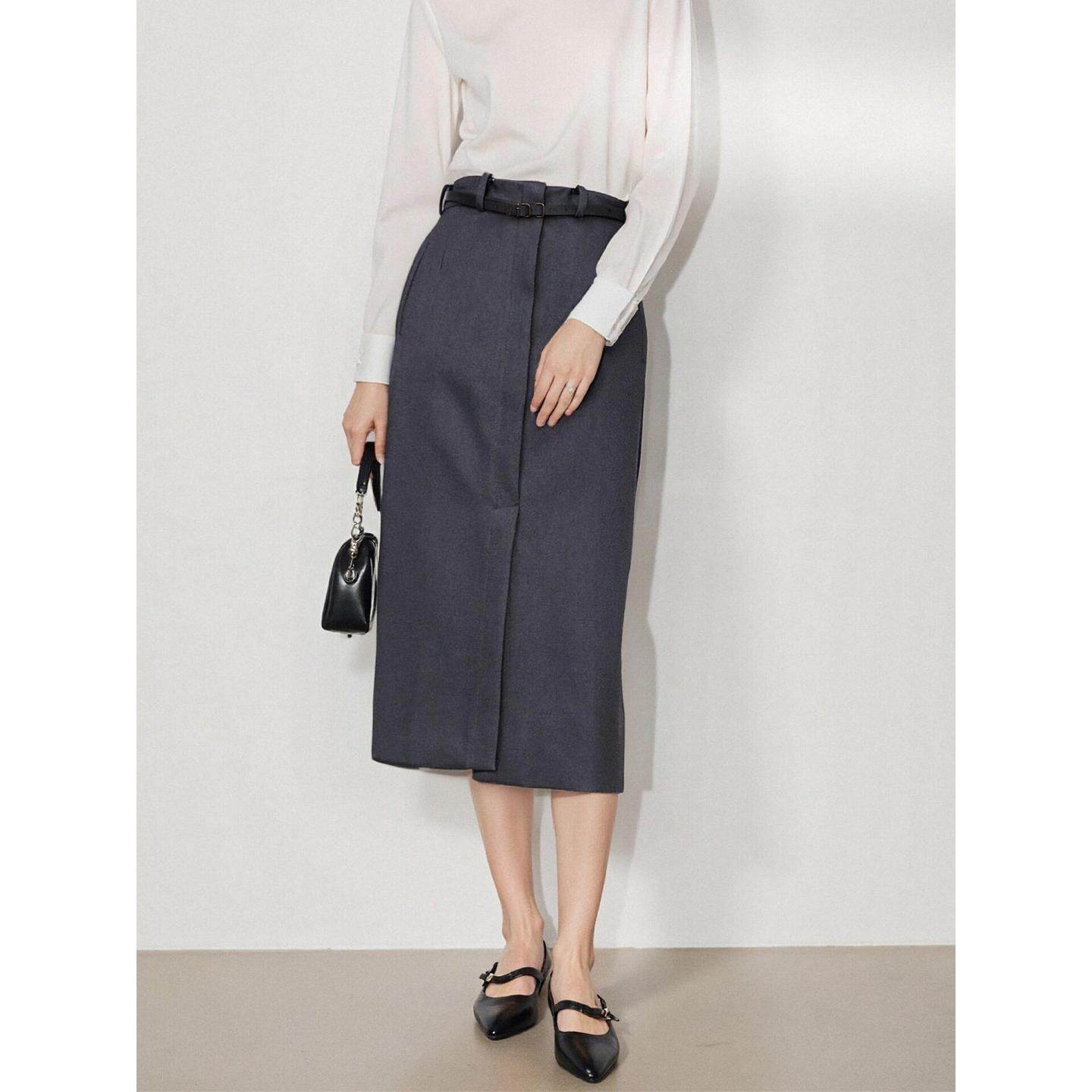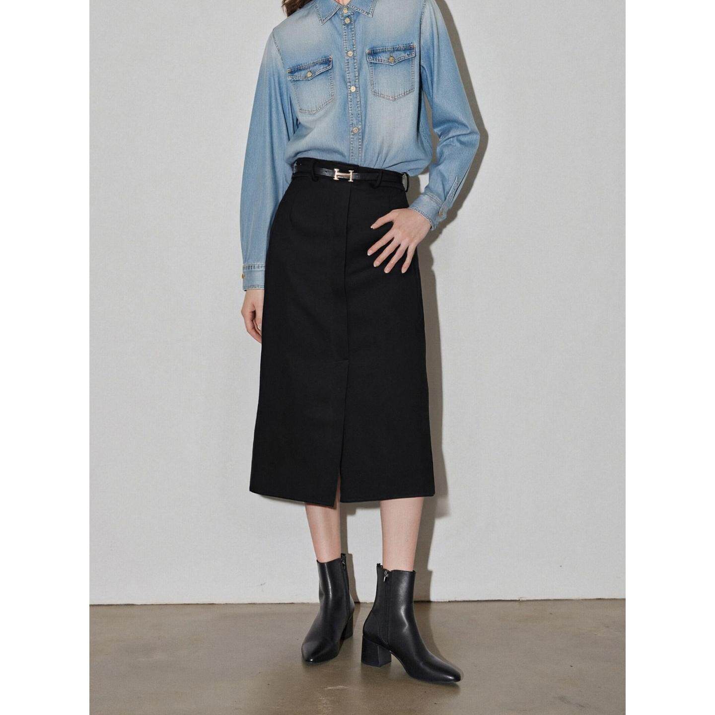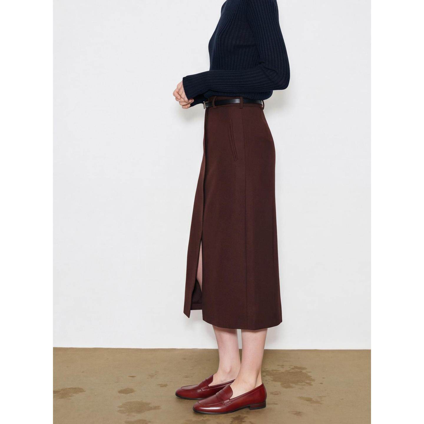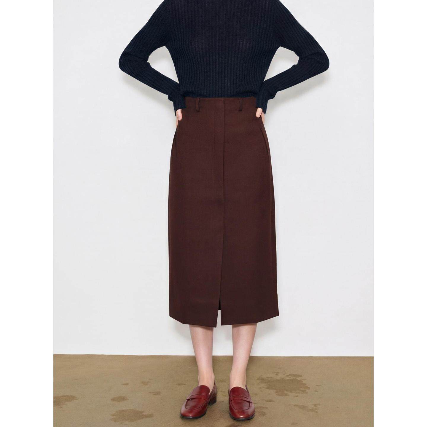 新款 百家好咖色直筒半身裙女2026春季 开叉高腰中长裙 House Basic