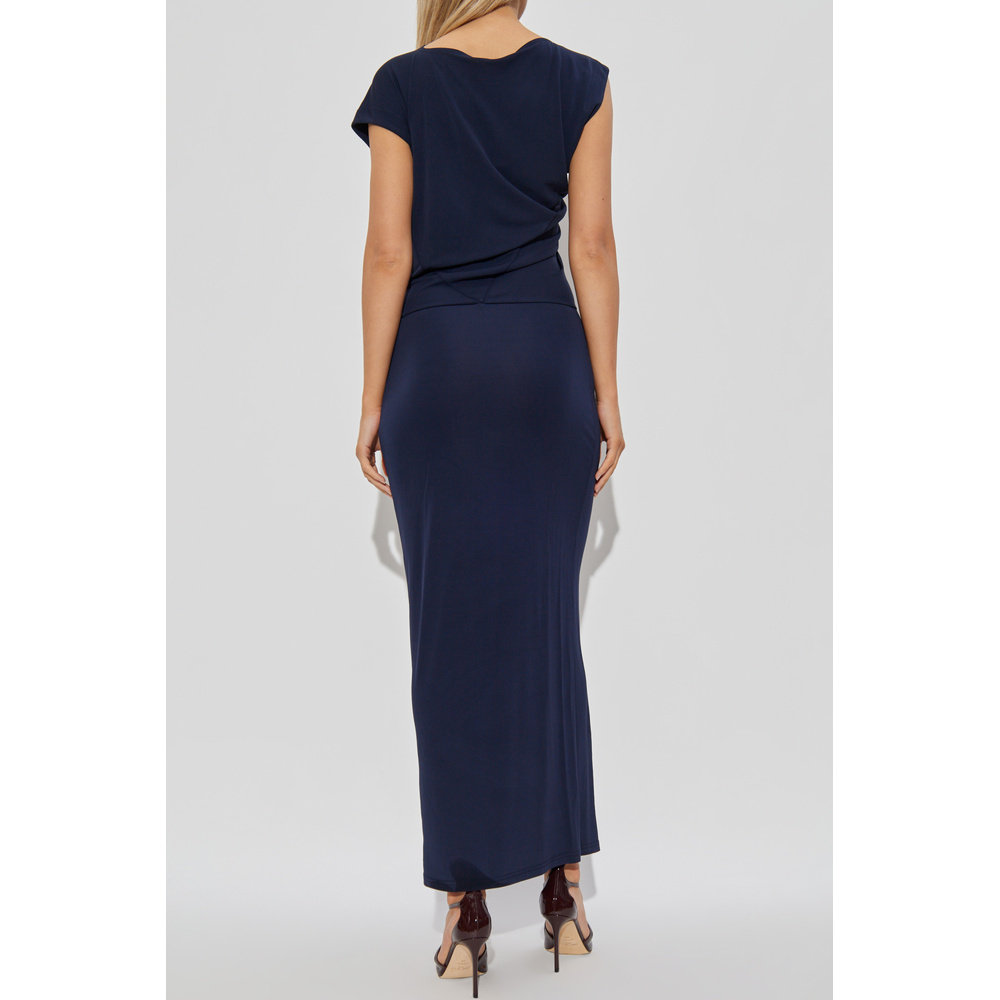 宽松遮肉显瘦中长裙 拼接大摆鱼尾连衣裙2026春款 柒院大码 圆领长袖