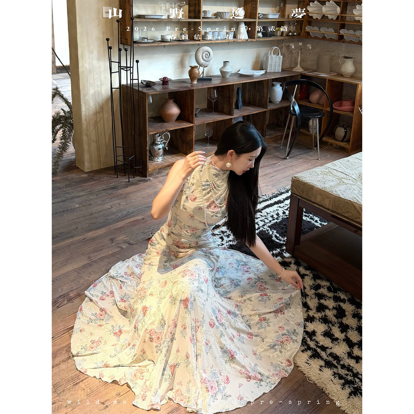 旗袍收腰显瘦遮肉长款 山野逸梦 改良中式 新款 连衣裙 2026年春季