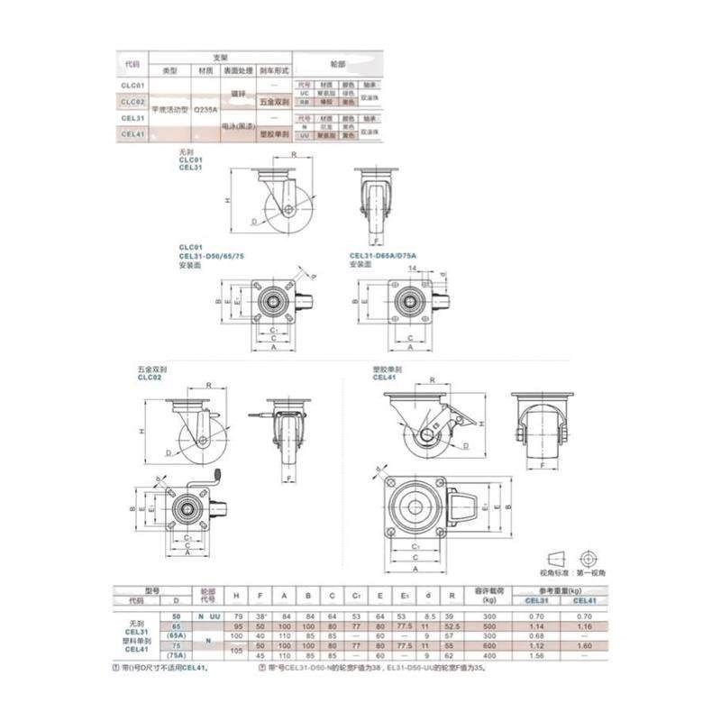D65 替代怡合达脚轮 D50 D75 CEL31