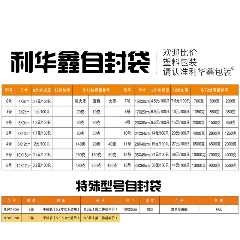 11号8丝大号自封袋300只食品袋透明封口袋密封袋PE塑料密实分装 袋