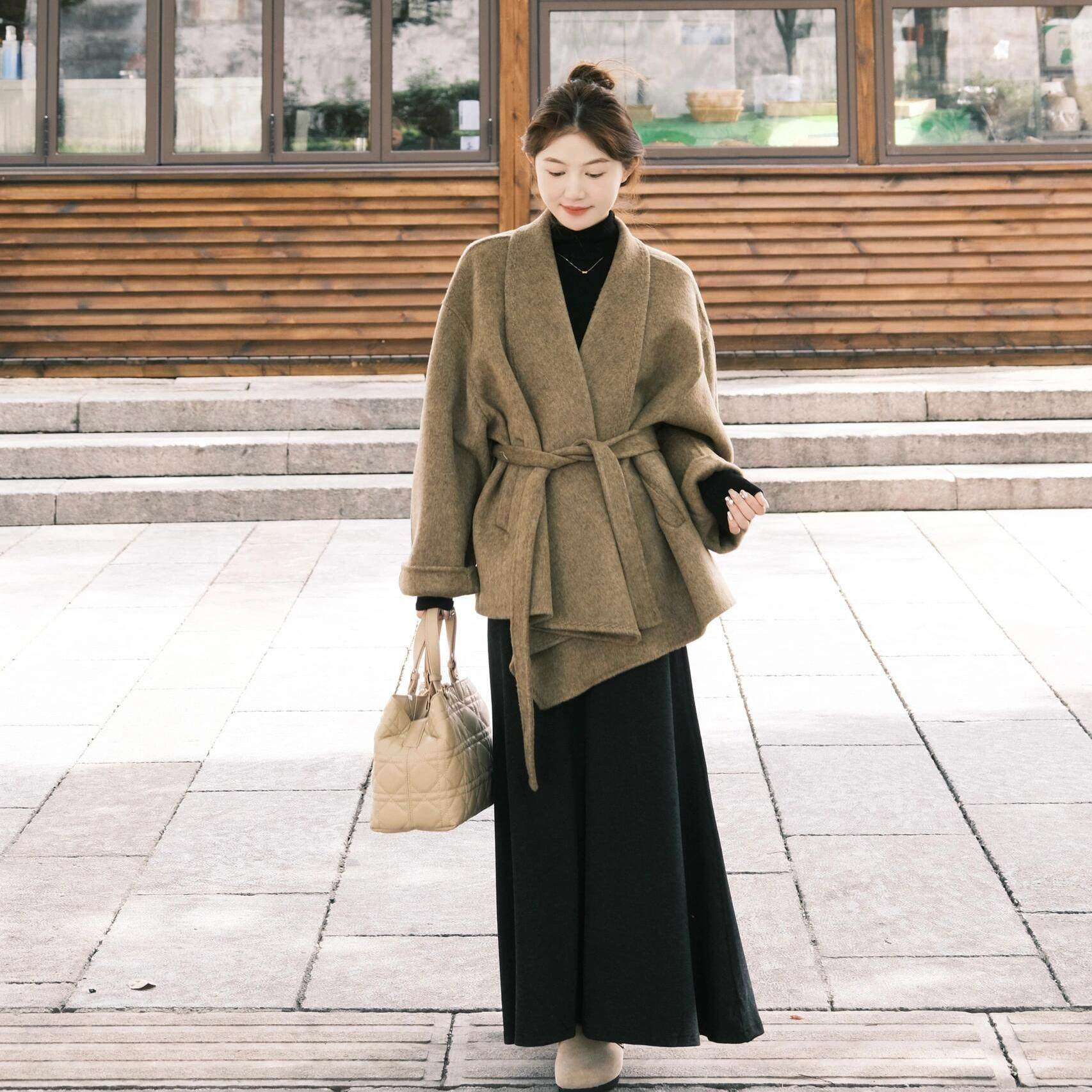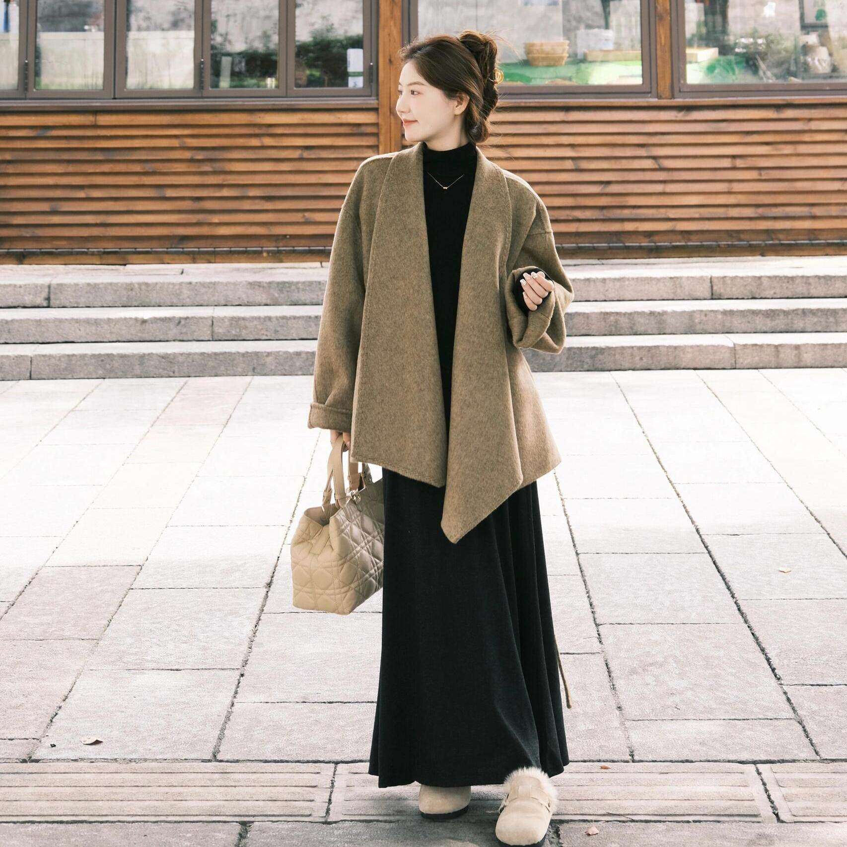 女 胖mm毛呢外套裙子韩系穿搭高级轻熟两件套装 冬装 搭配一整套大码