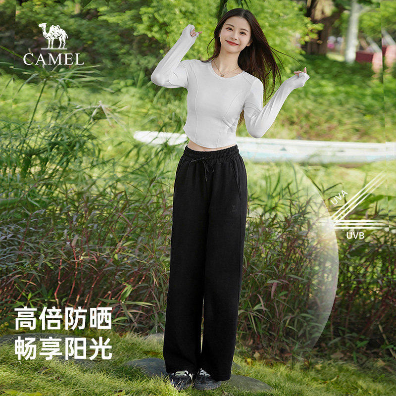 瑜伽健身裤 跑步休闲直筒裤 女防晒冰凉垂感白色阔腿裤 骆驼运动长裤