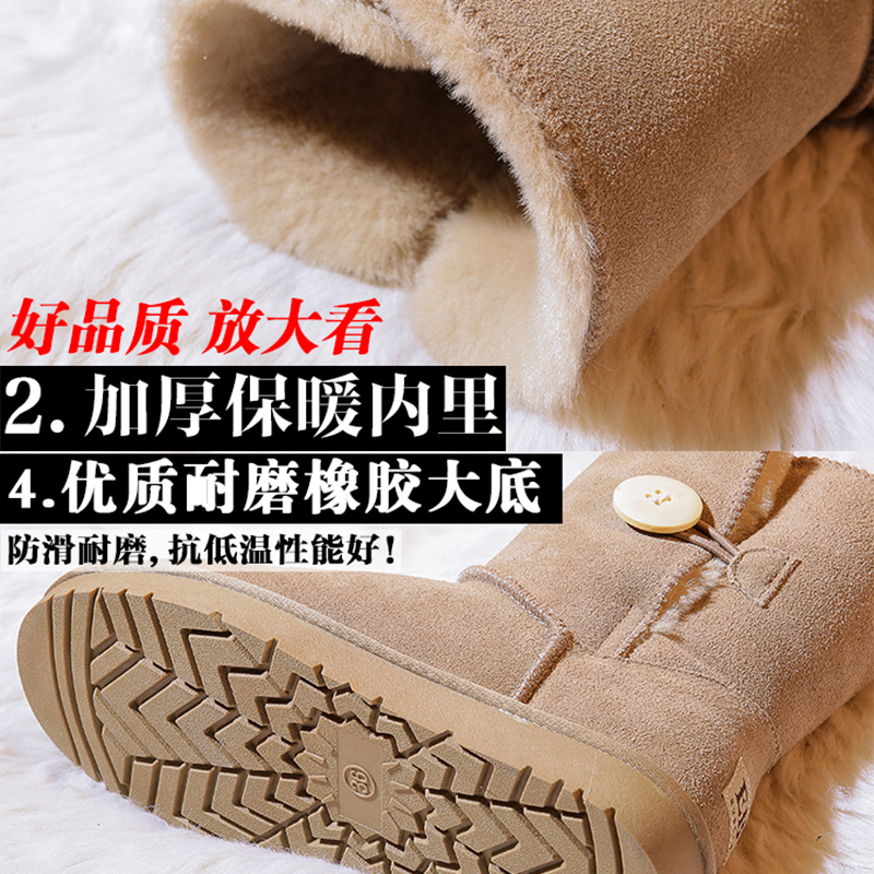 面包鞋 真皮雪地靴女中筒皮毛一体牛皮学生百搭时尚 新款 2025年冬季