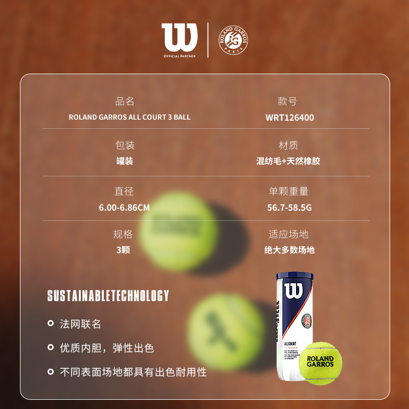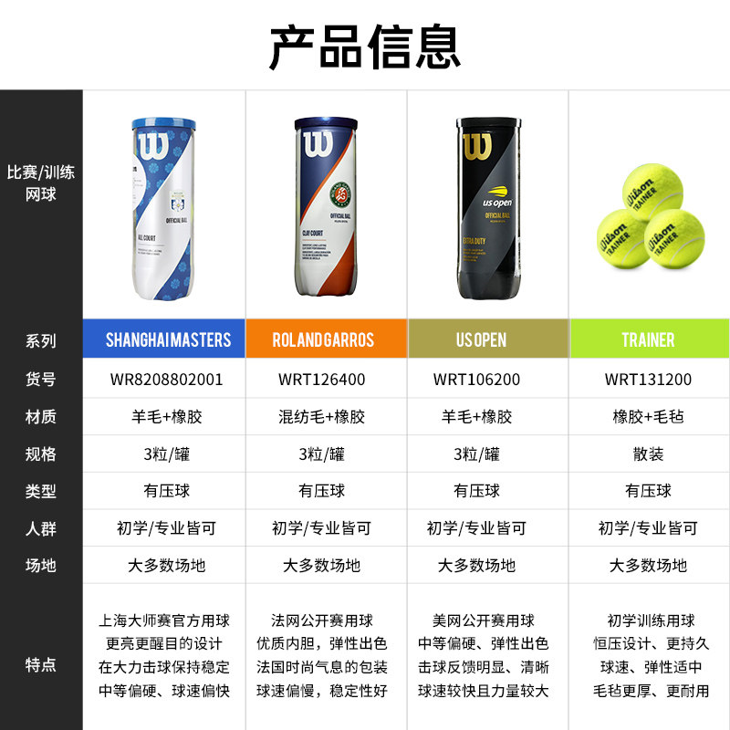 wilson威尔胜上海大师赛法网美网专业比赛网球3粒装 初学训练用球