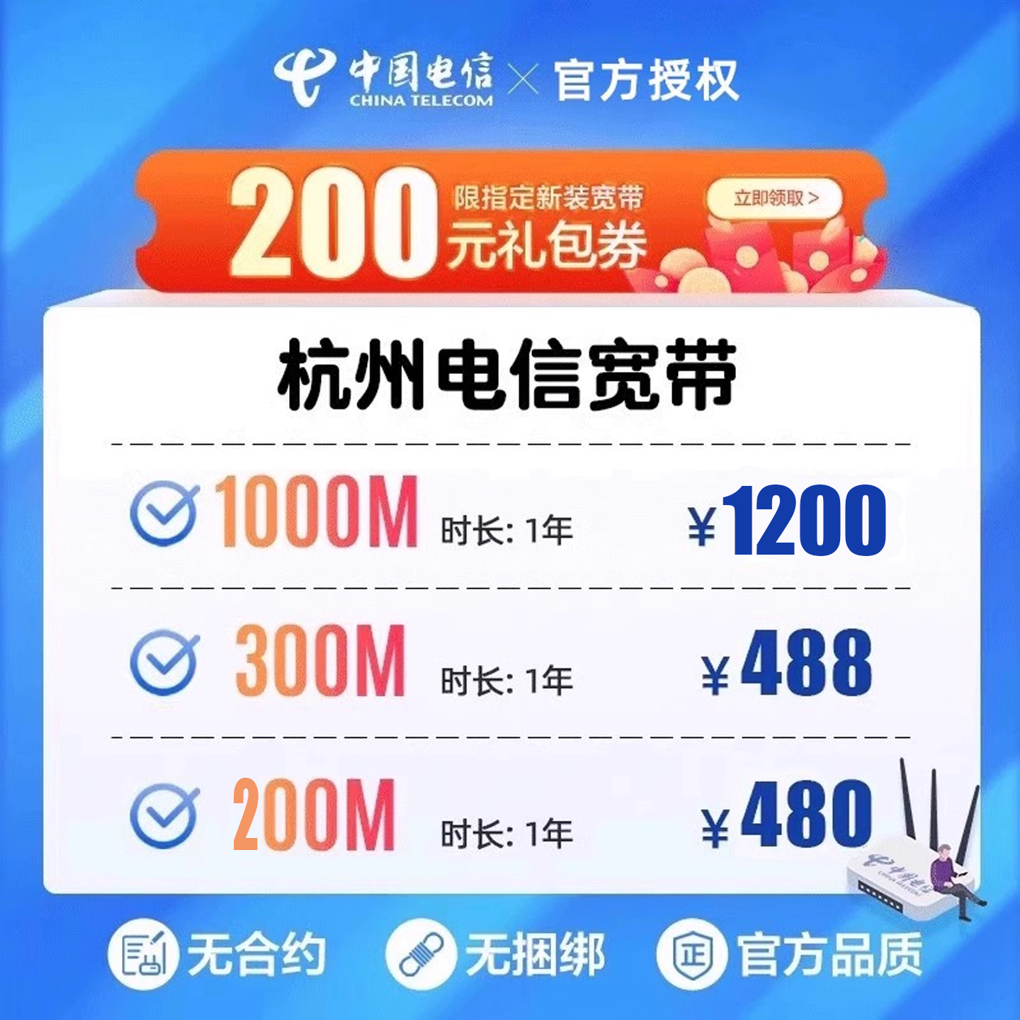 单宽带 套餐装 杭州电信宽带办理新装 续费浙江中国电信包年上门安装