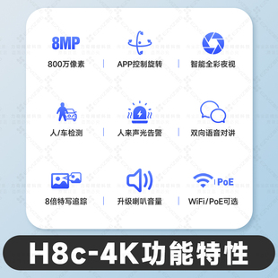 萤石室外无线800万网络摄像机H8C全彩旋转对讲C8C监控PoE摄影头