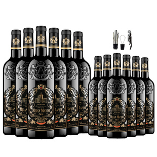 红酒整箱买一箱送一箱法国进口14度干红葡萄酒12支浮雕瓶 包邮