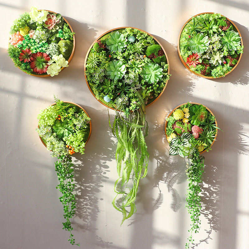 圆形装 饰简约卧室田园风 饰品绿植框壁挂花阳台挂件挂墙植物墙面装