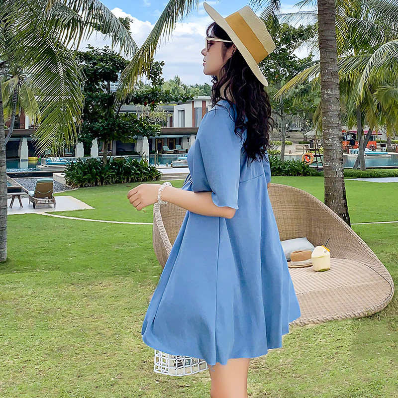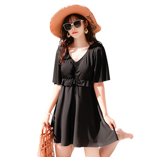 胖MM女士保守连体度假泳装 大码 泳衣女遮肉显瘦泡温泉大胸裙式