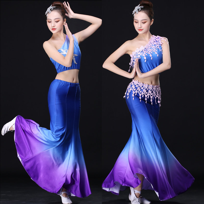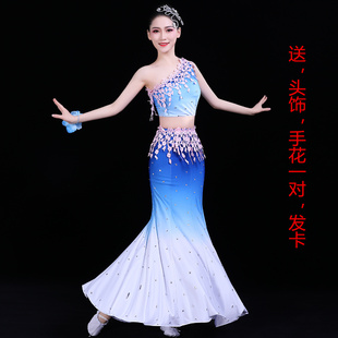 傣族舞蹈服女成人孔雀修身 表演服桃李杯艺考练功包臀鱼尾裙儿童K